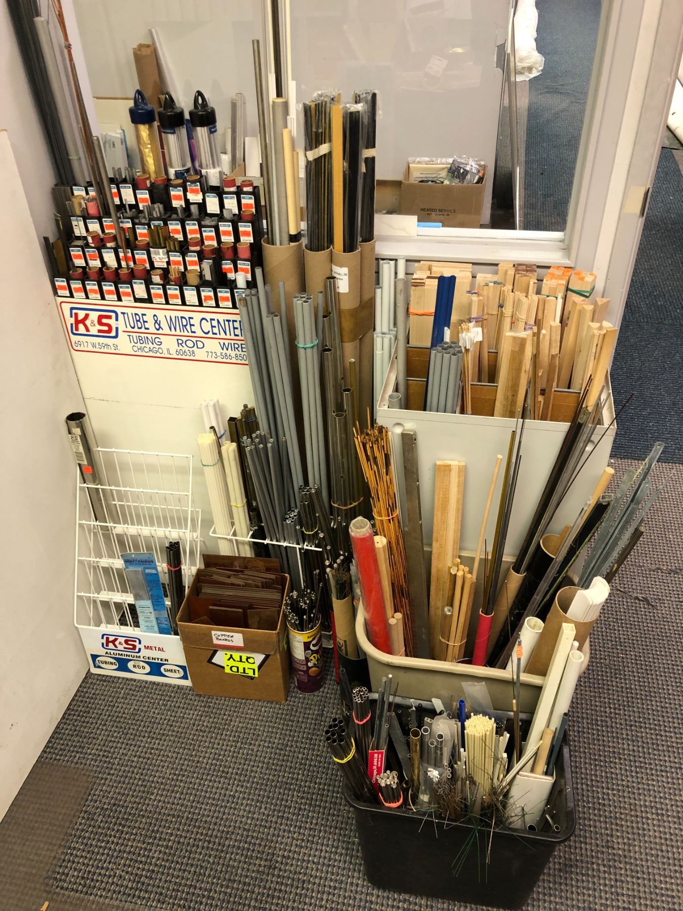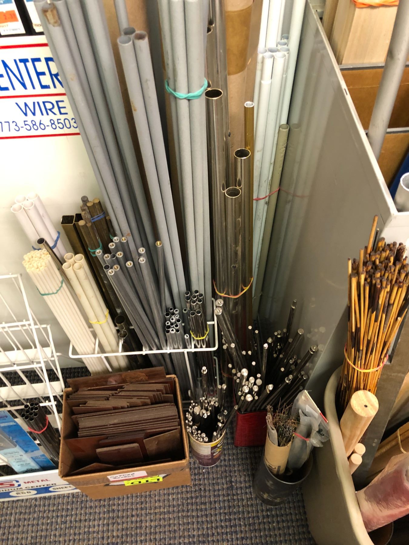 Large lot of K & S Metal Tubing - brass, copper, aluminum & stainless tubes, rods, bars, including plastic, wood dowels and balsa wood. Includes copper sheets.