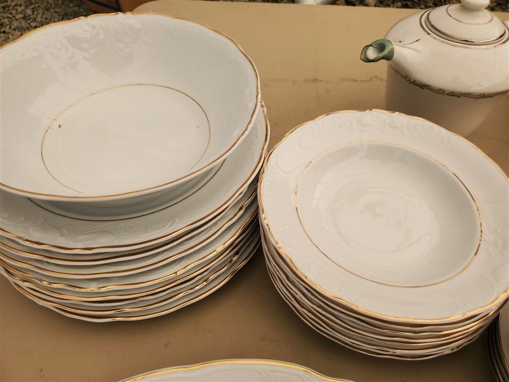 Large lot of dish ware white with gold trim - Most Items have not been tested - 17% Buyer Fee. Payment Processed through Live Auction World ( Visa or Master Card ) pick up Saturday, or Tuesday