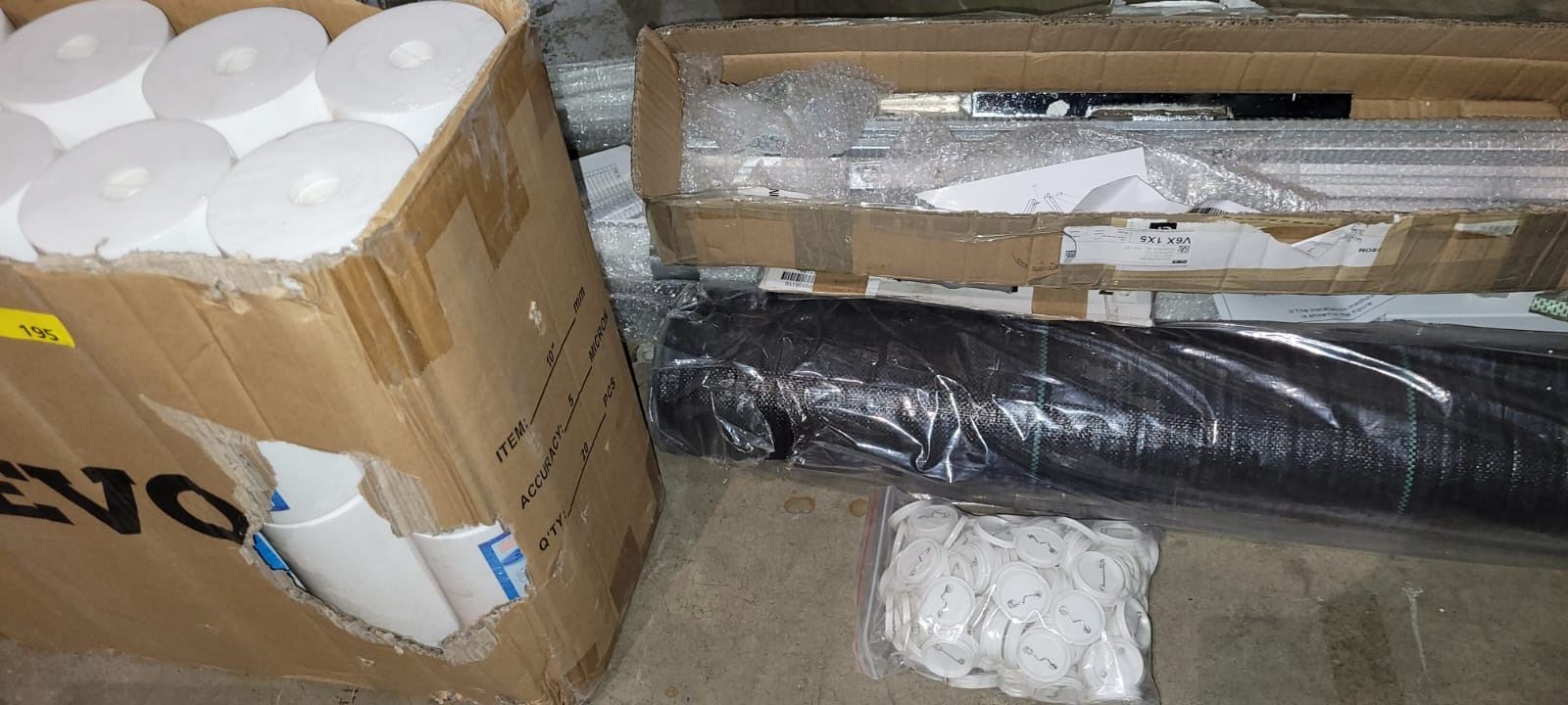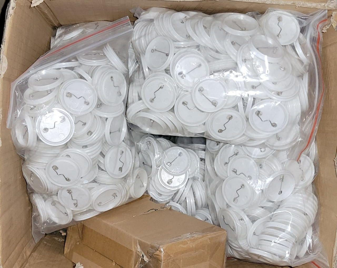 Large lot of misc. - includes box of sediment filter / stairway rails / box of plain badges etc