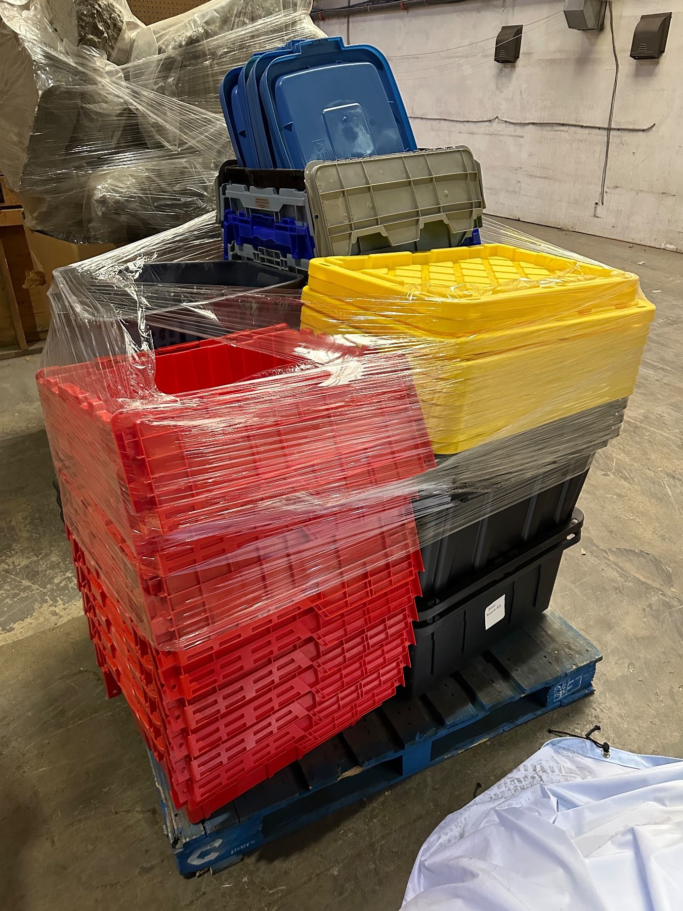 Large pallet of tote boxes & plastic bins approx. 50 pcs