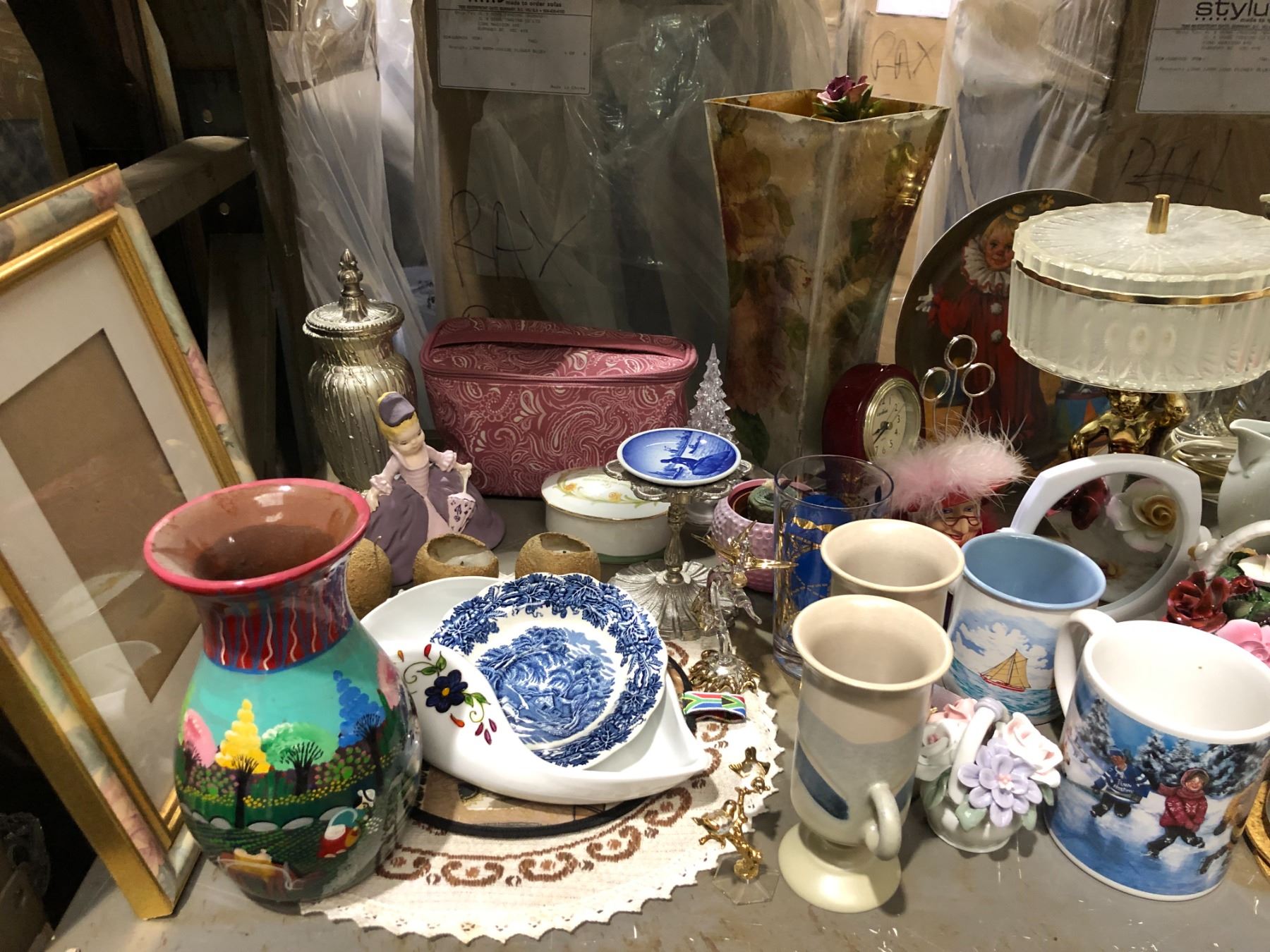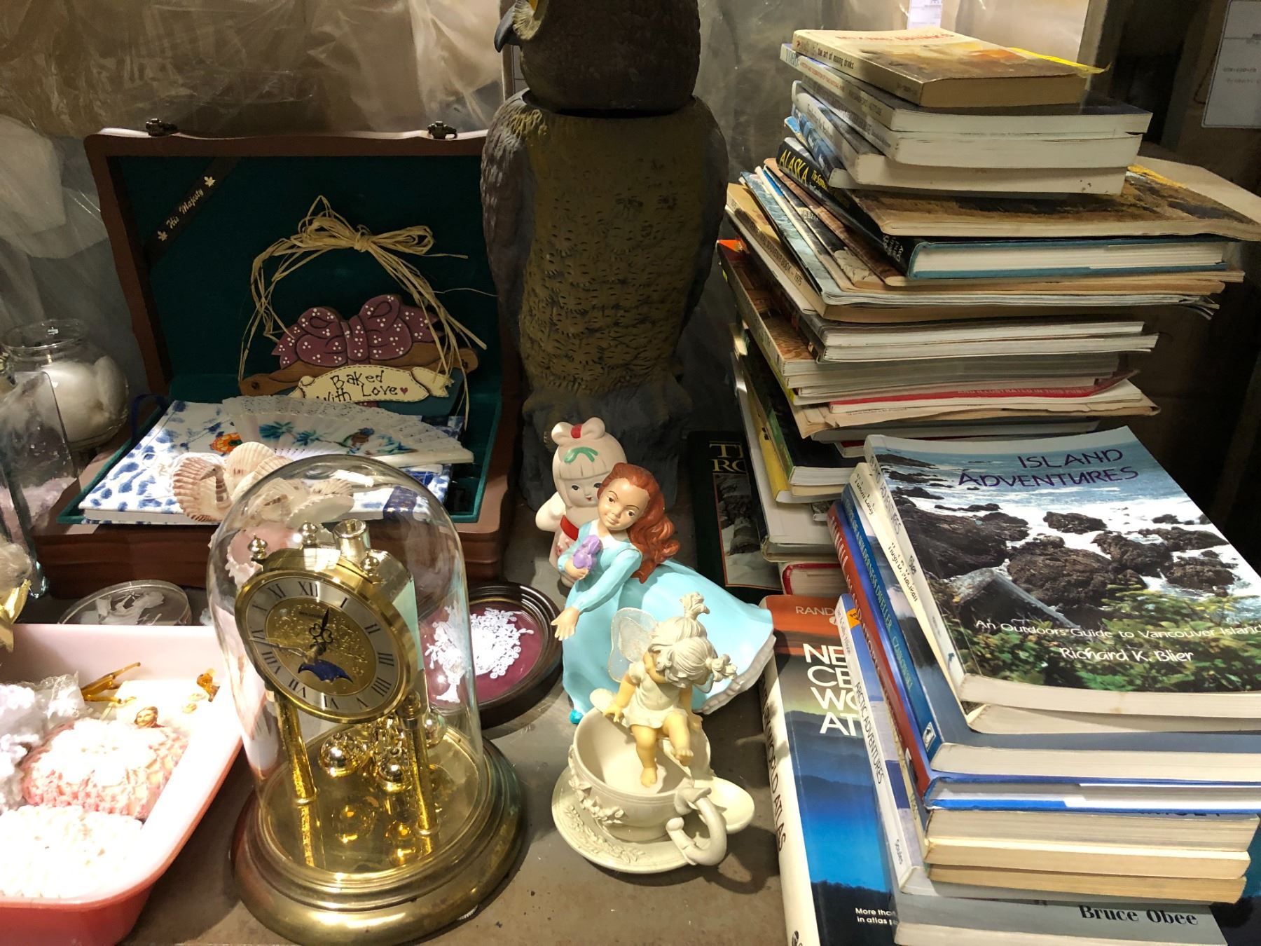 Large shelf lot of assorted household items - books/ knick knacks & collectibles