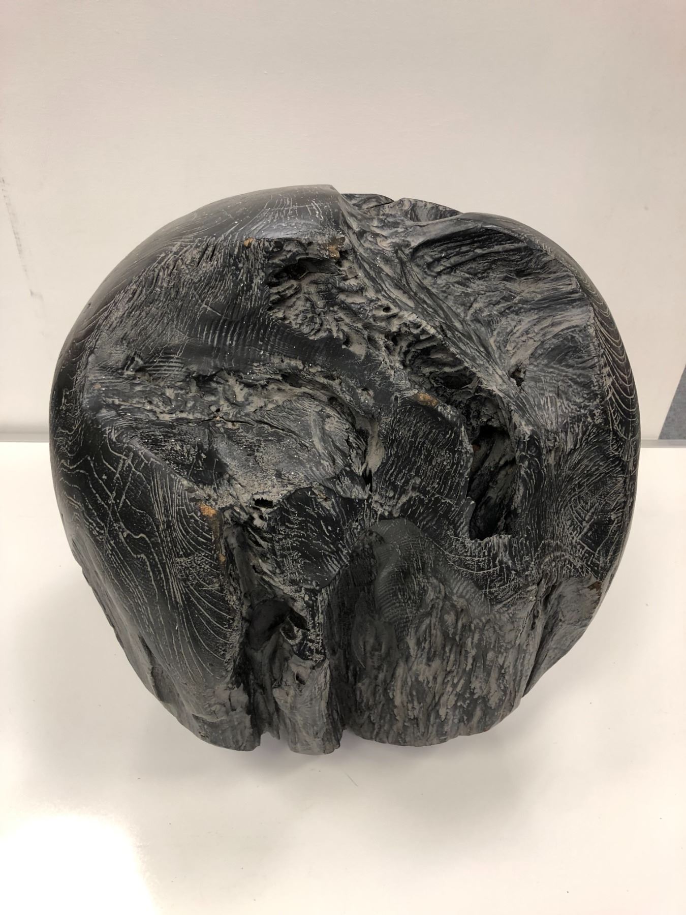 Large solid wooden sculpture - teakwood painted black (stands 19in tall, approx. 20in wide, approx. 50lbs)