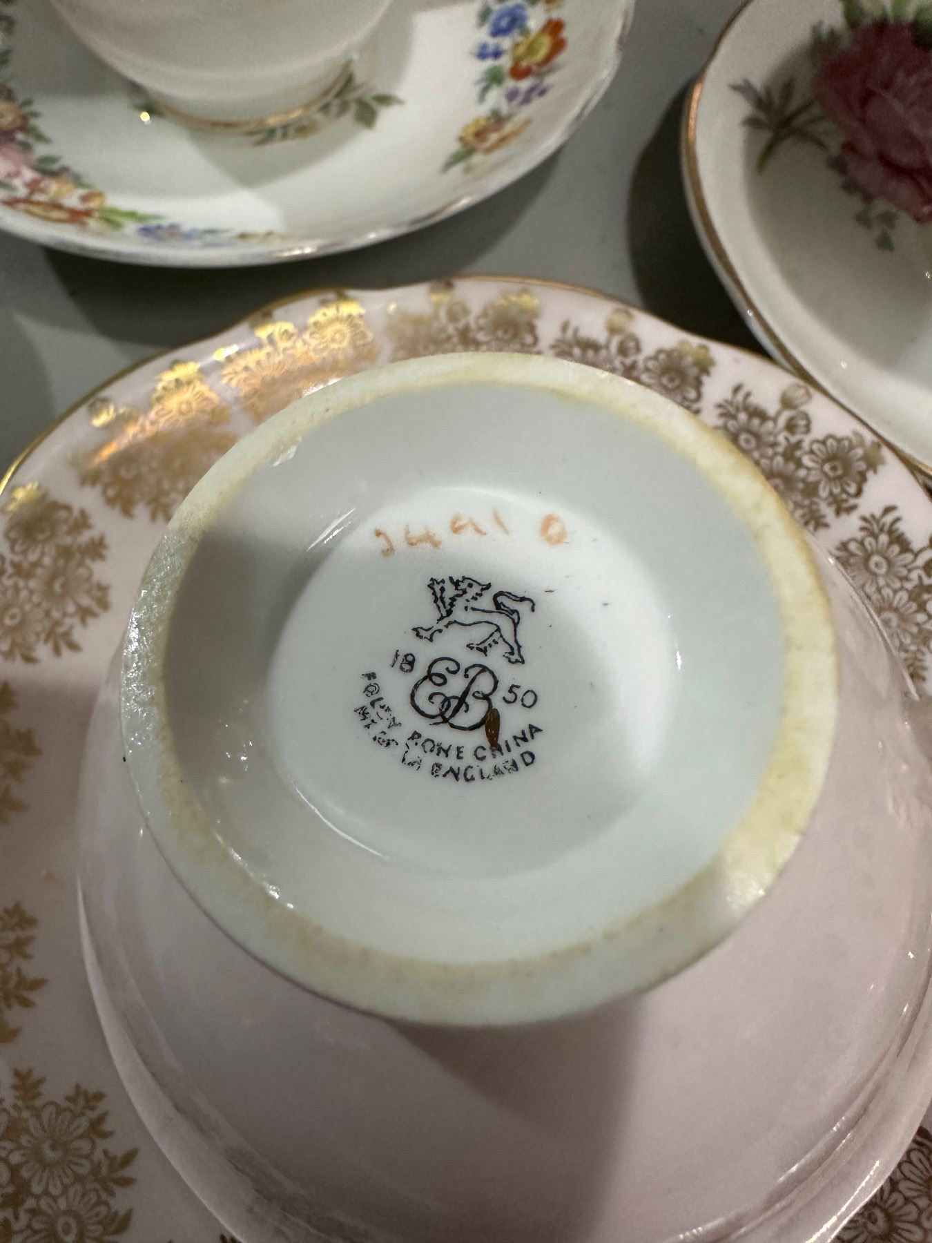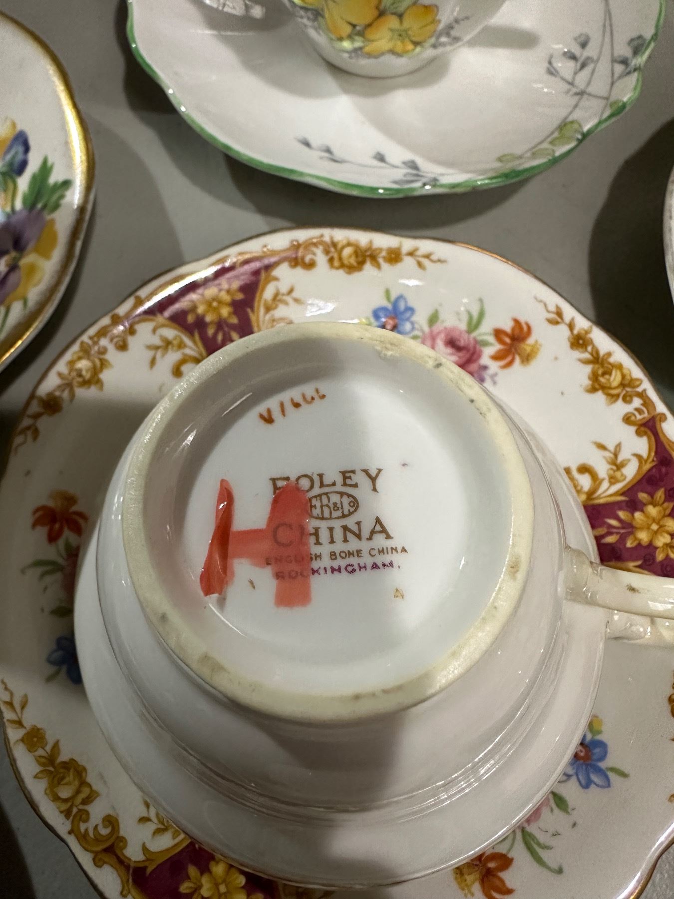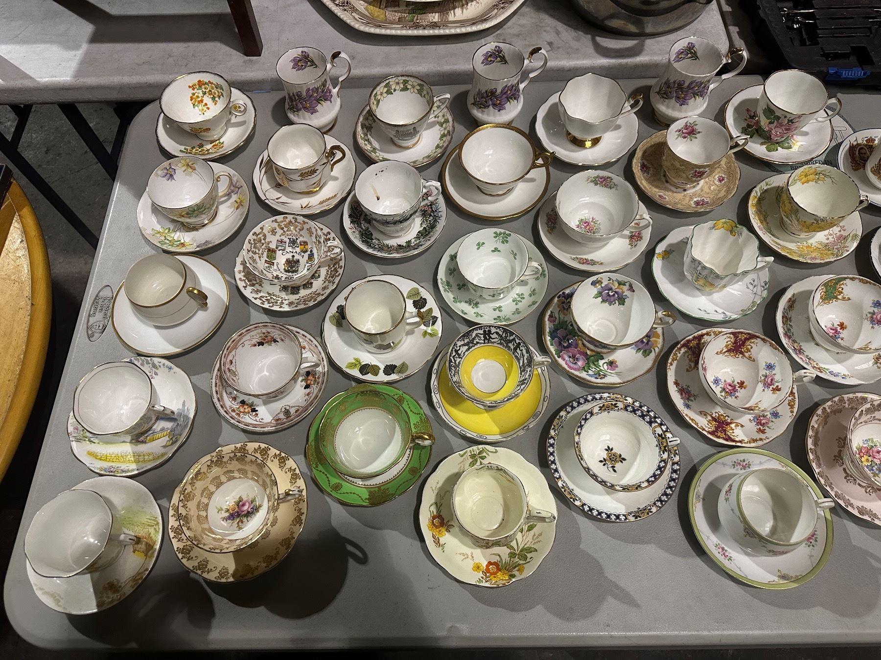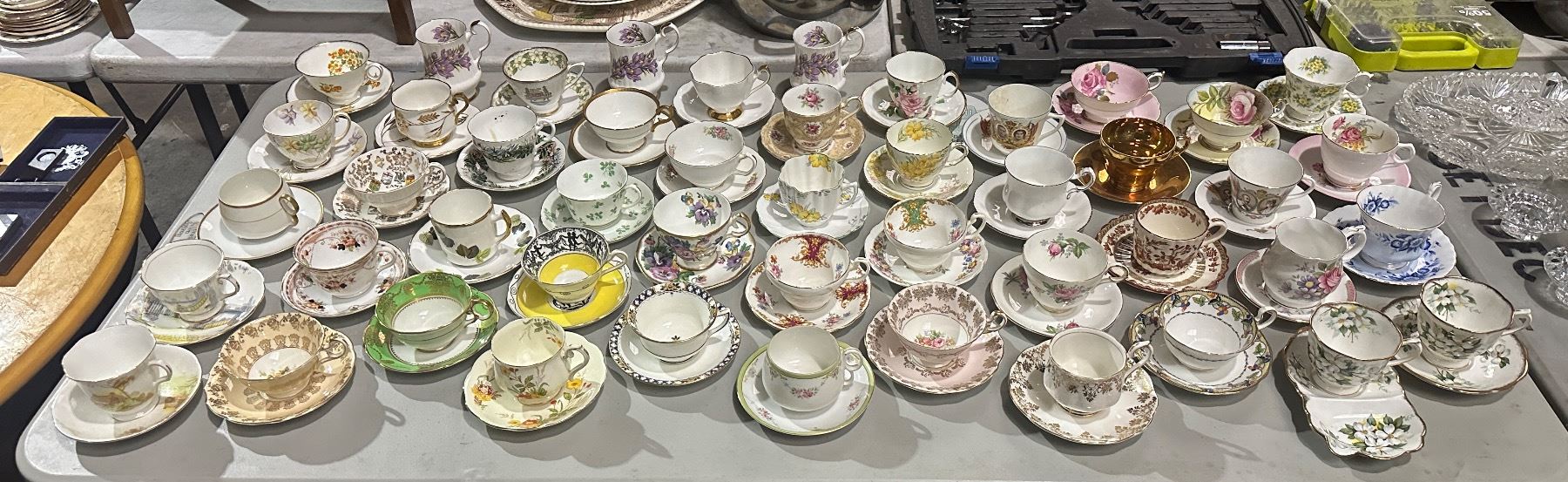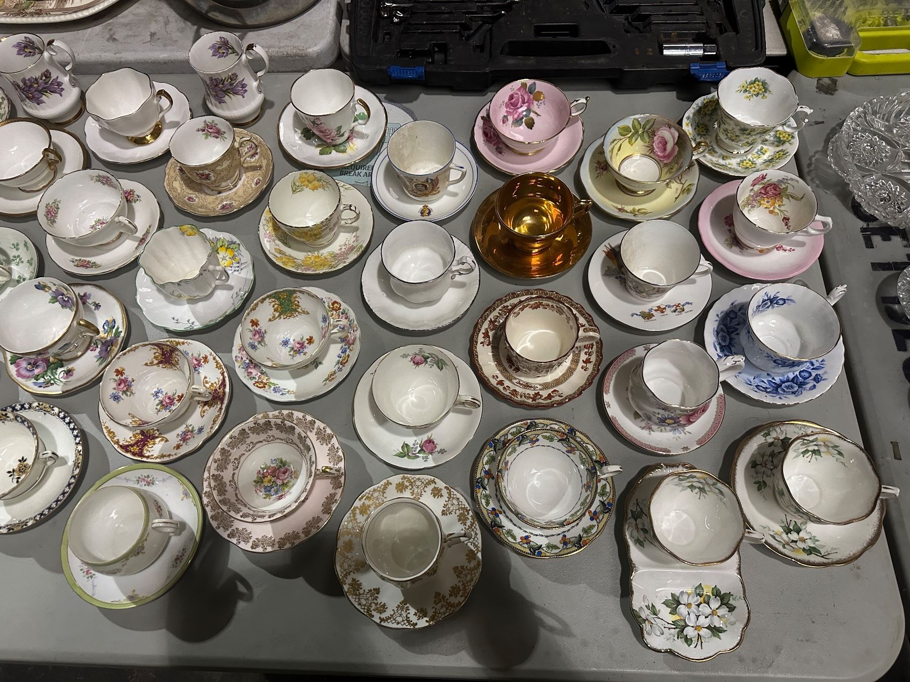 Large table top of various tea cups & plates (approx. 40 pieces)