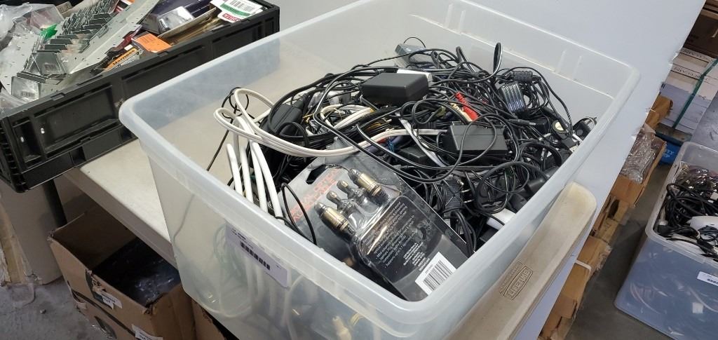 Large tote of AC cords