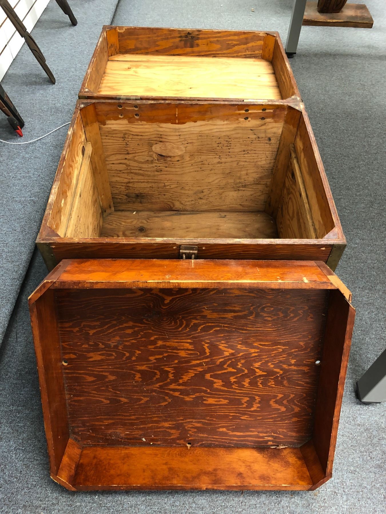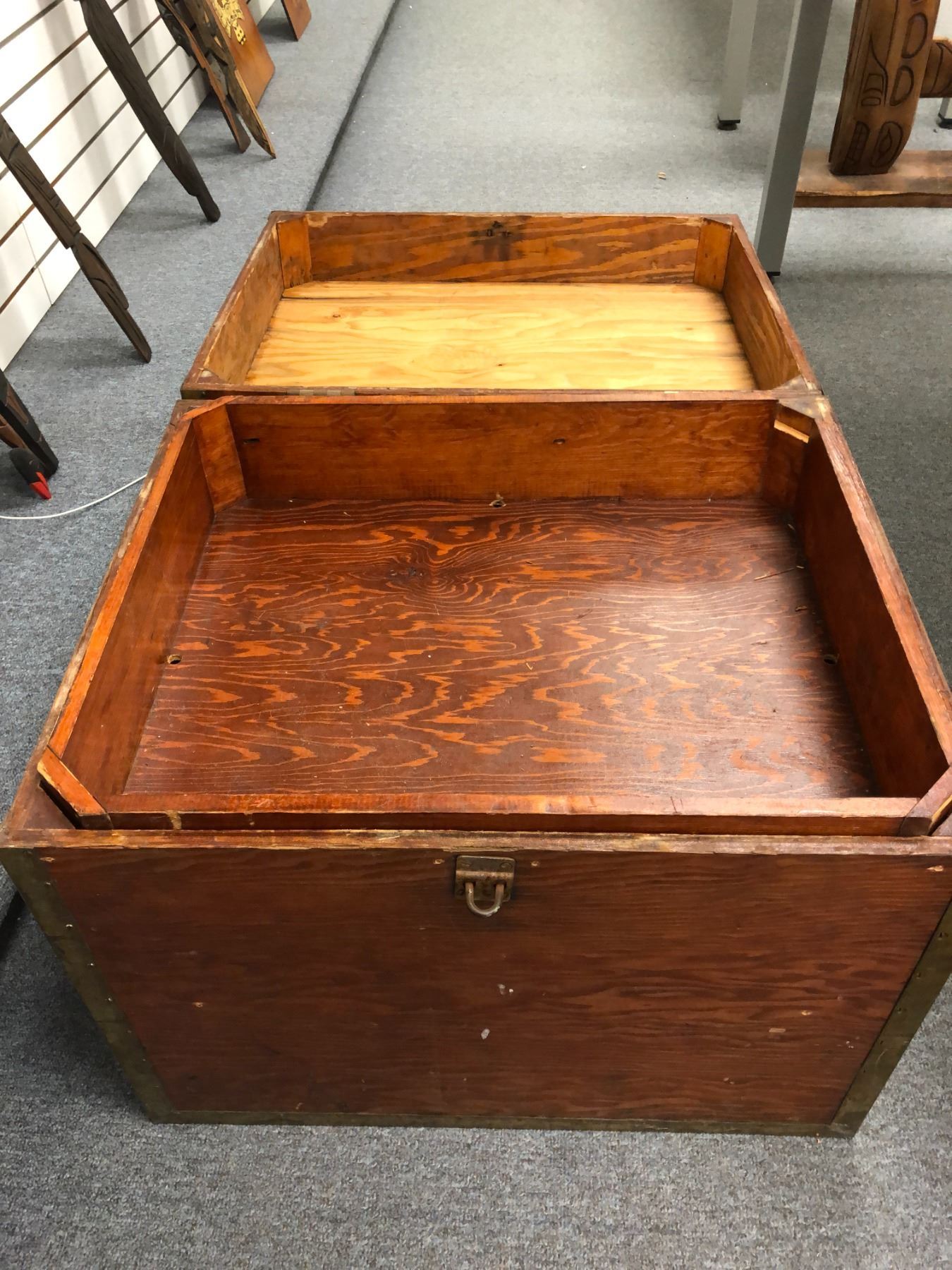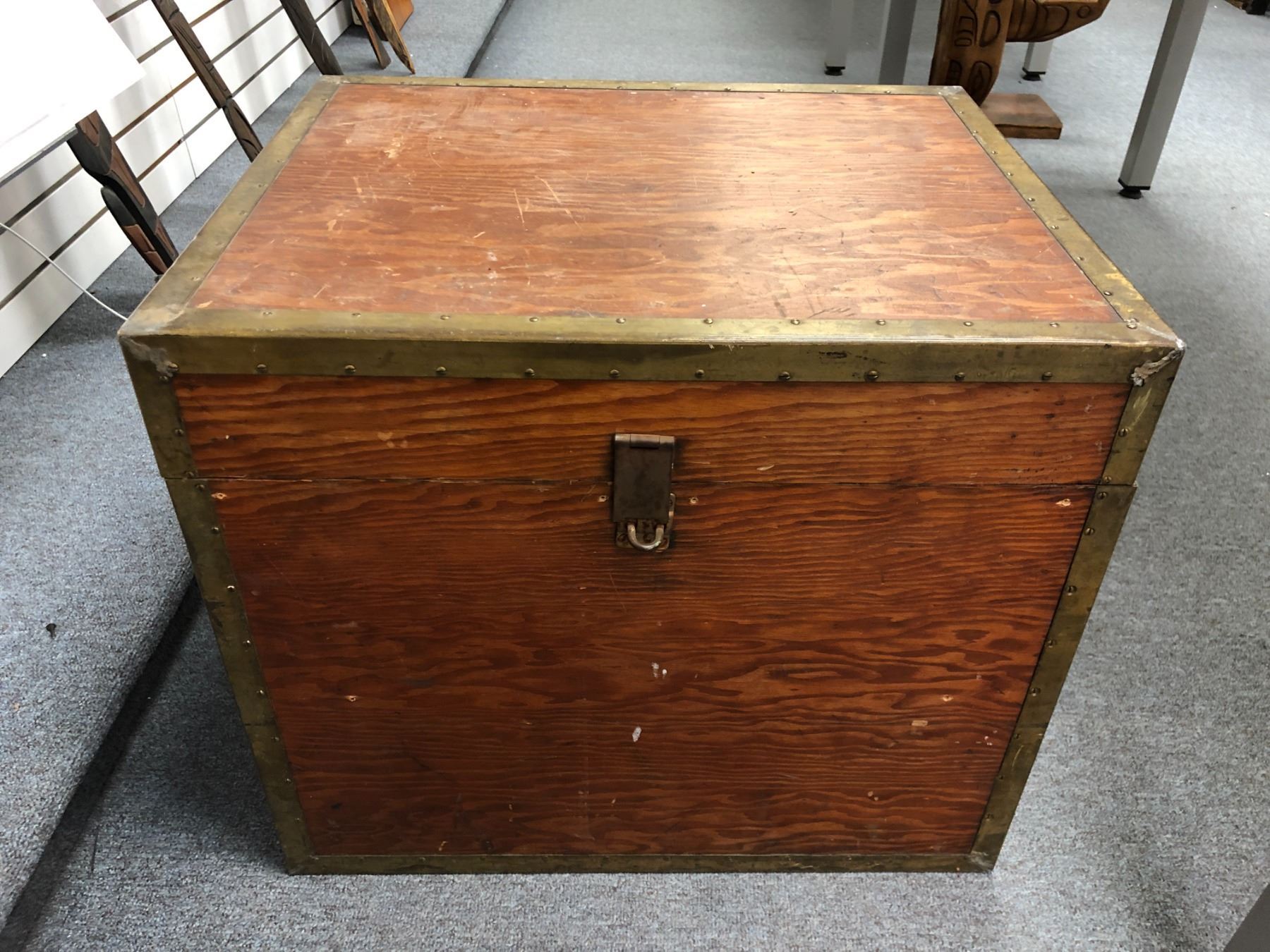 Large wood w/ brass trim storage box from movie set - 24in across x 21in high x 20in wide