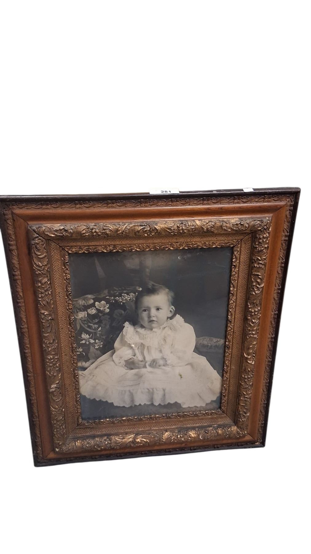 Late 1800s antique framed Victorian era portrait of baby 31"x27"
