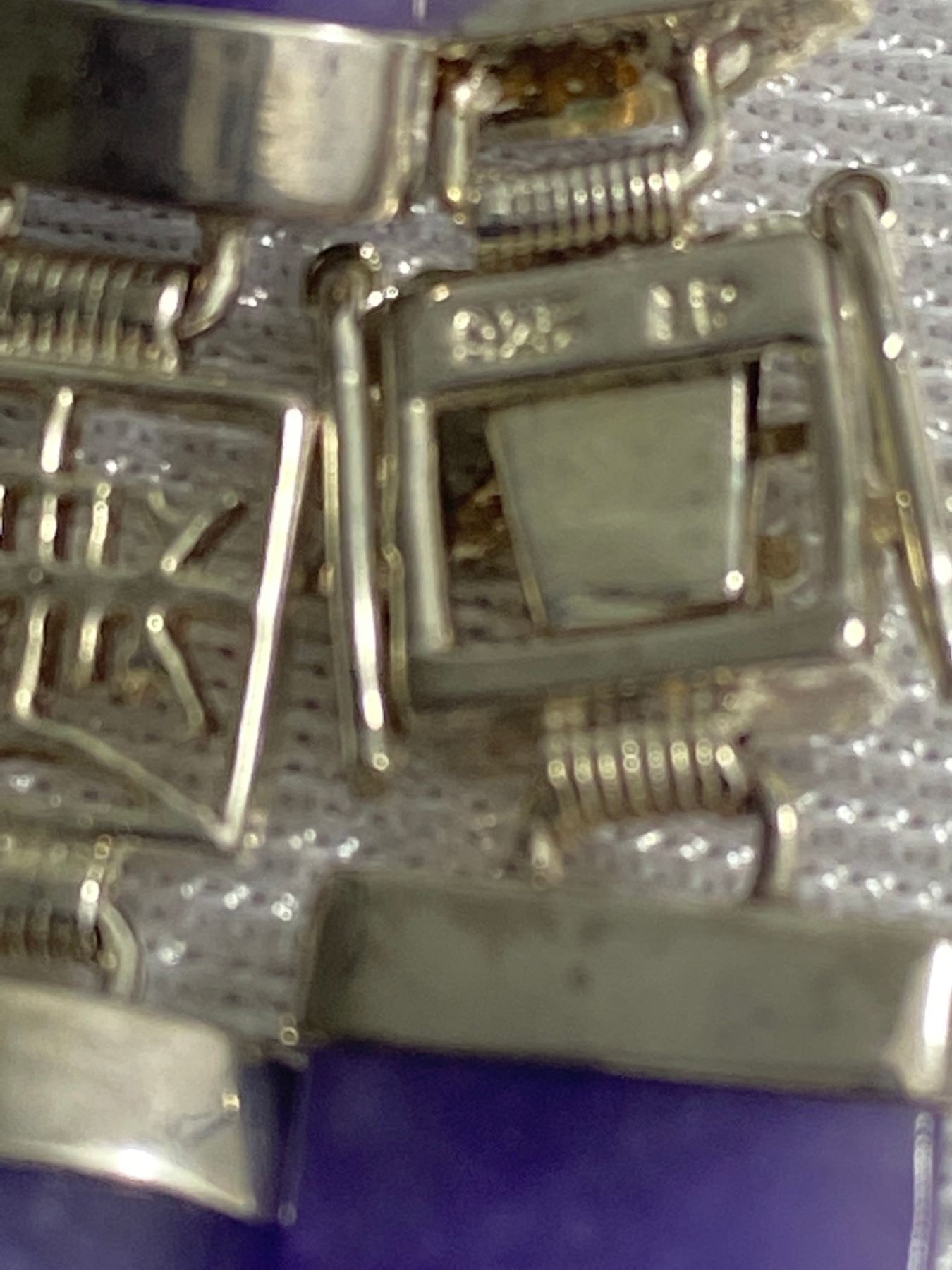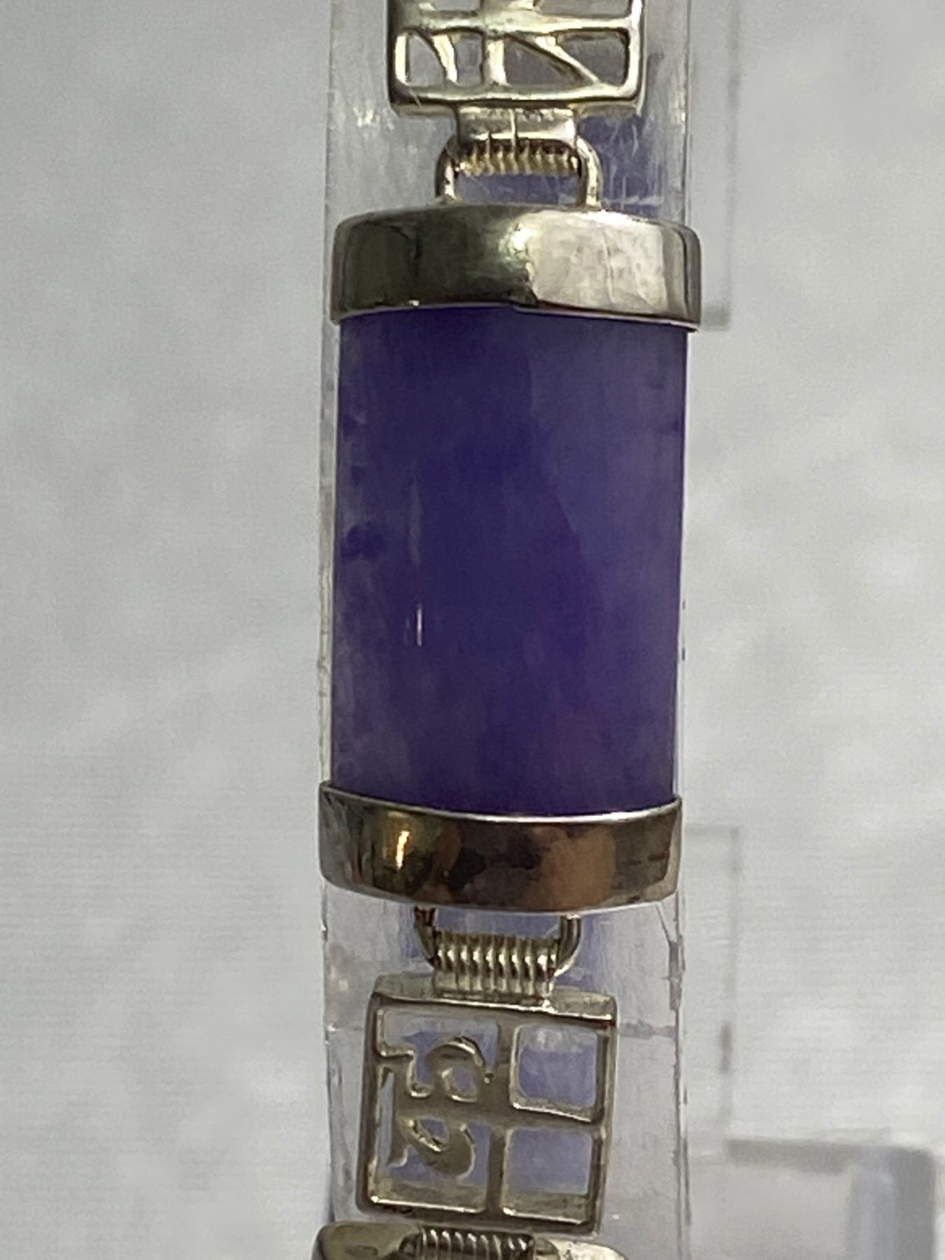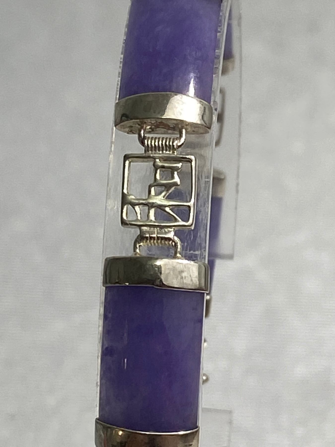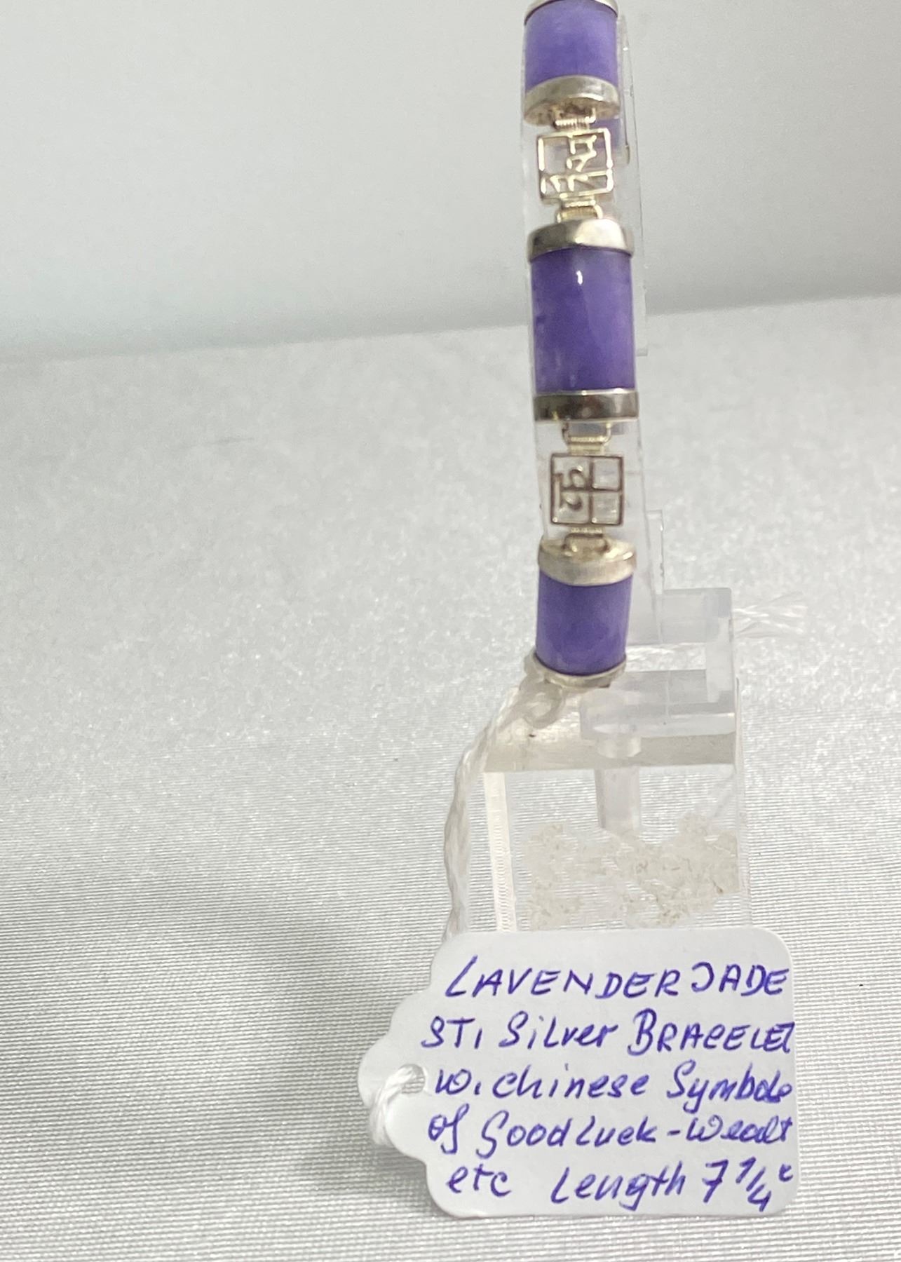 Lavender Jade Sterling Silver Bracelet with Chinese symbols of Good Luck, Wealth Etc