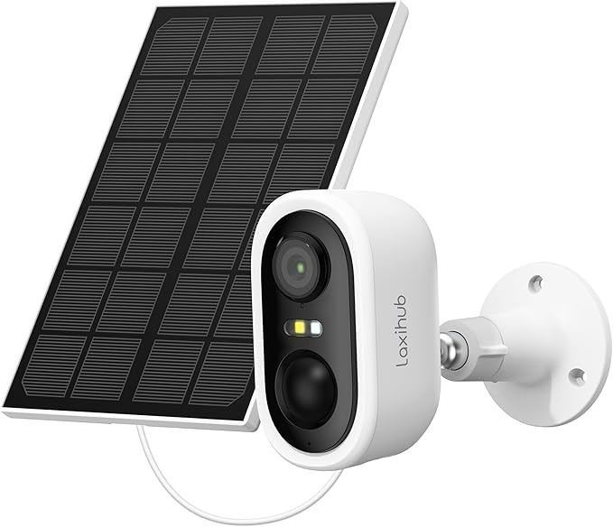 LAXIHUB Security Camera Outdoor Wireless,2K/3MP Solar CCTV,Battery Operated Home/House Security,PIR Detection,IP65,Colour Night Vision,Two-Way Audio,W2 Kit1