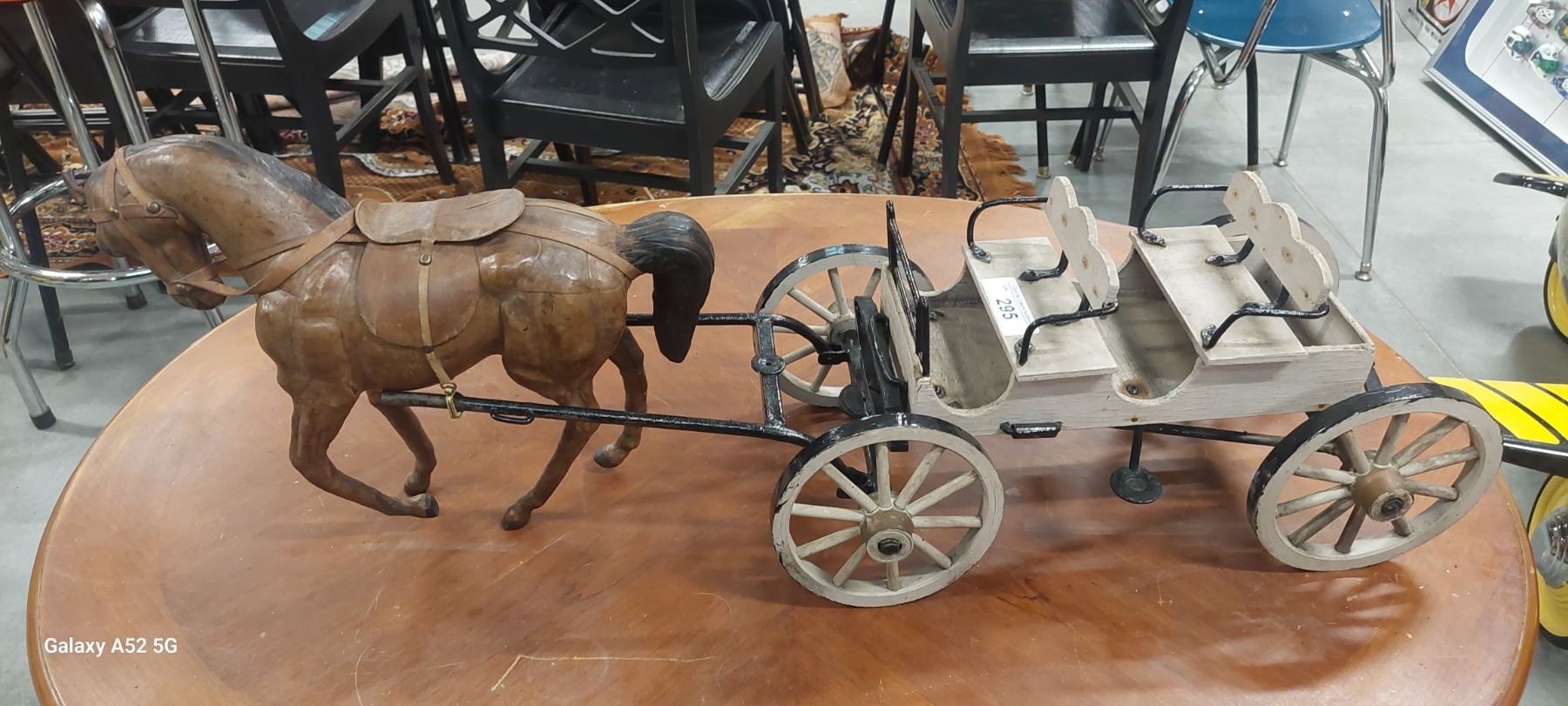 Leather horse and folk art carriage