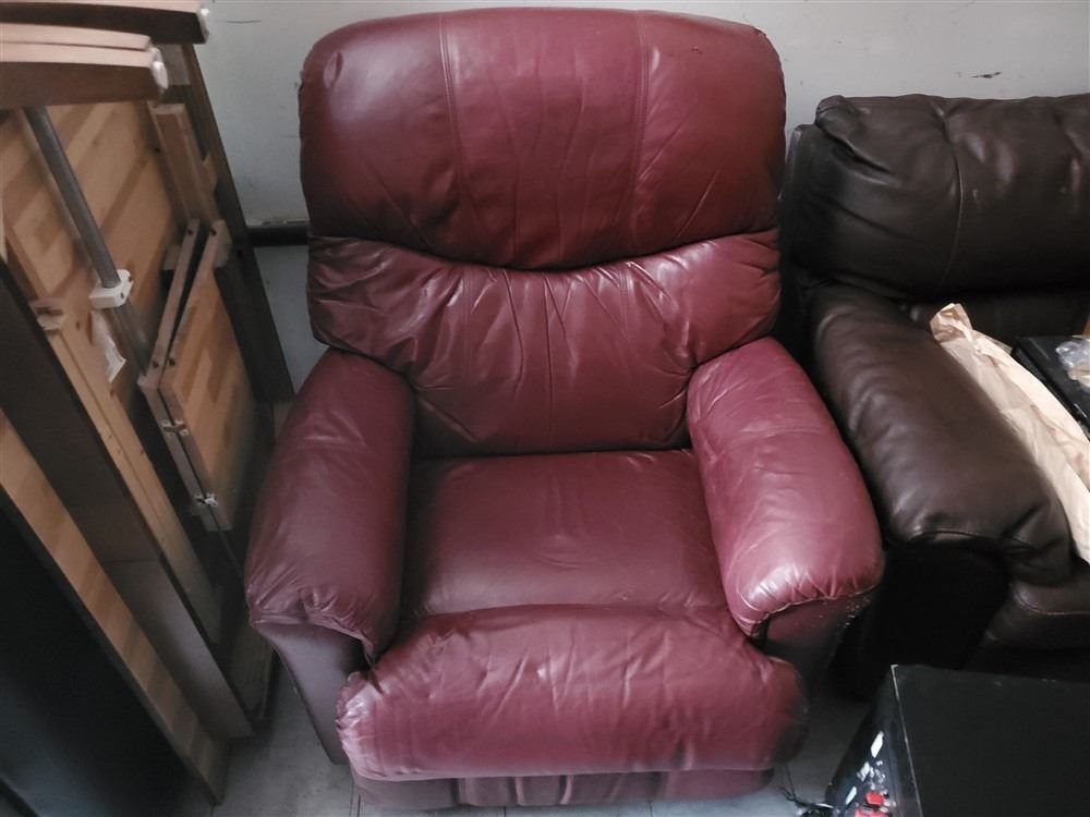 Leather reclining chair - Most Items have not been tested - Viewing Recommended- 17% Buyer Fee. Payment Processed through Live Auction World ( Visa or Master Card ) pick up Wednesday