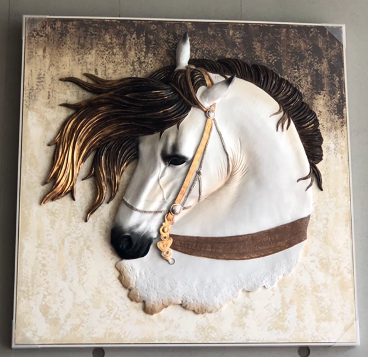 Left-Facing White Horse Head - Luxury Wall Art - 100 x 100 cm (New in Box)