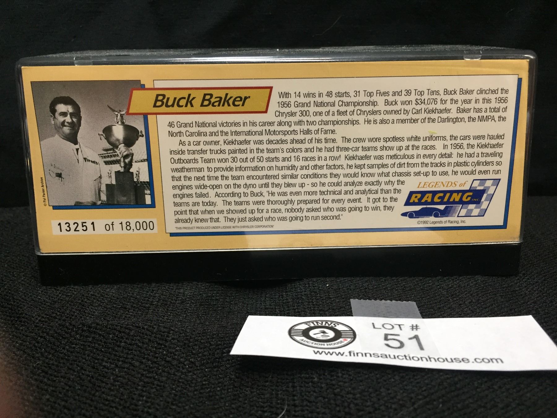 Legends of Racing Diecast Car Buck Baker 1956 Chrysler 300 In Museum Case