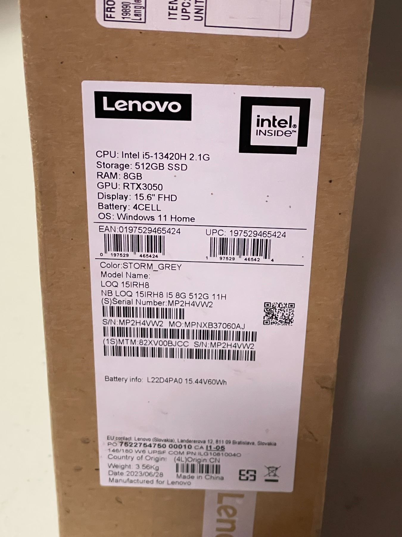 Lenovo LOQ 15.6" Laptop - 8GB Ram / 512GB SSD - Storm Grey