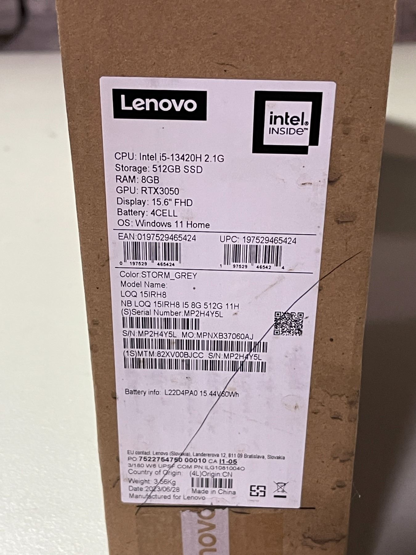Lenovo LOQ 15.6" Laptop - 8GB Ram / 512GB SSD - Storm Grey