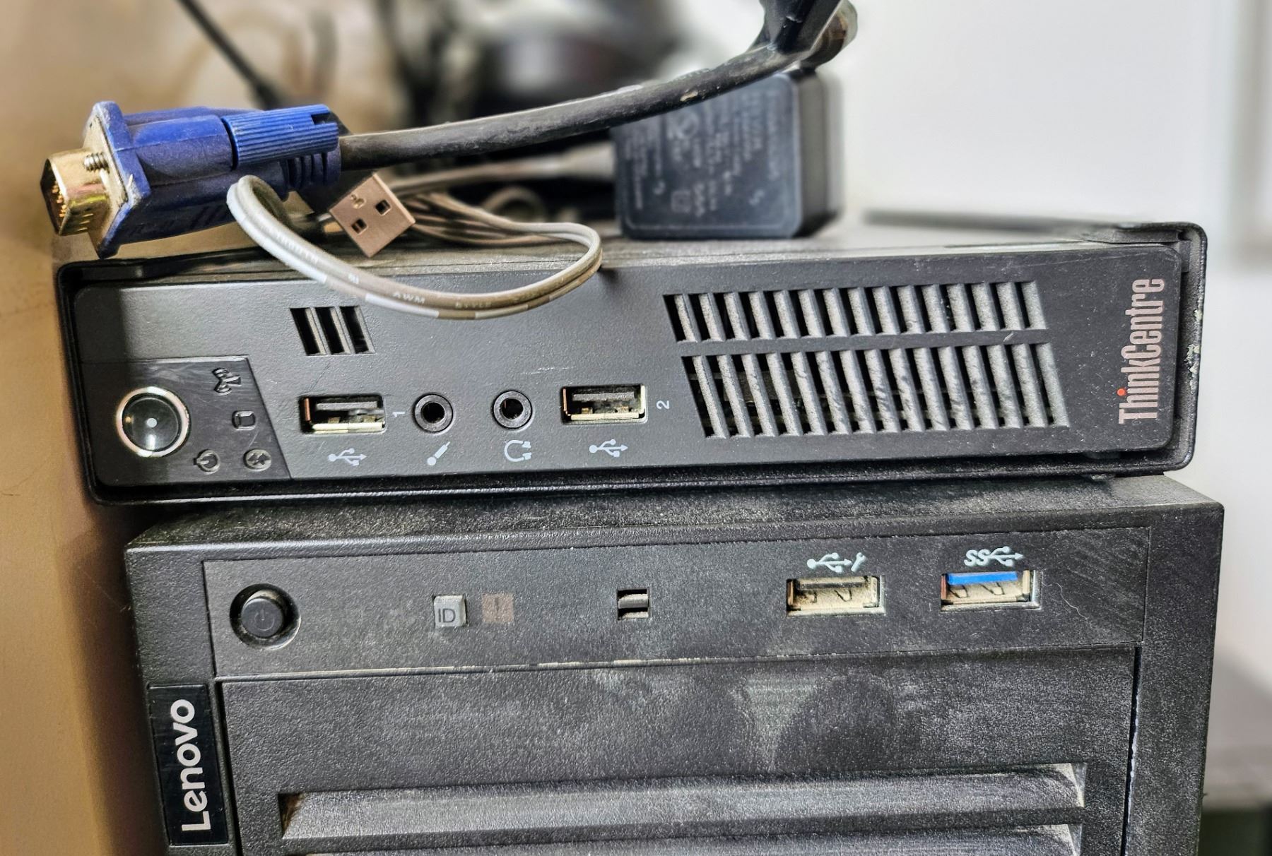 Lenovo thinksystem with multiple thinkcentres and other peripherals. All working