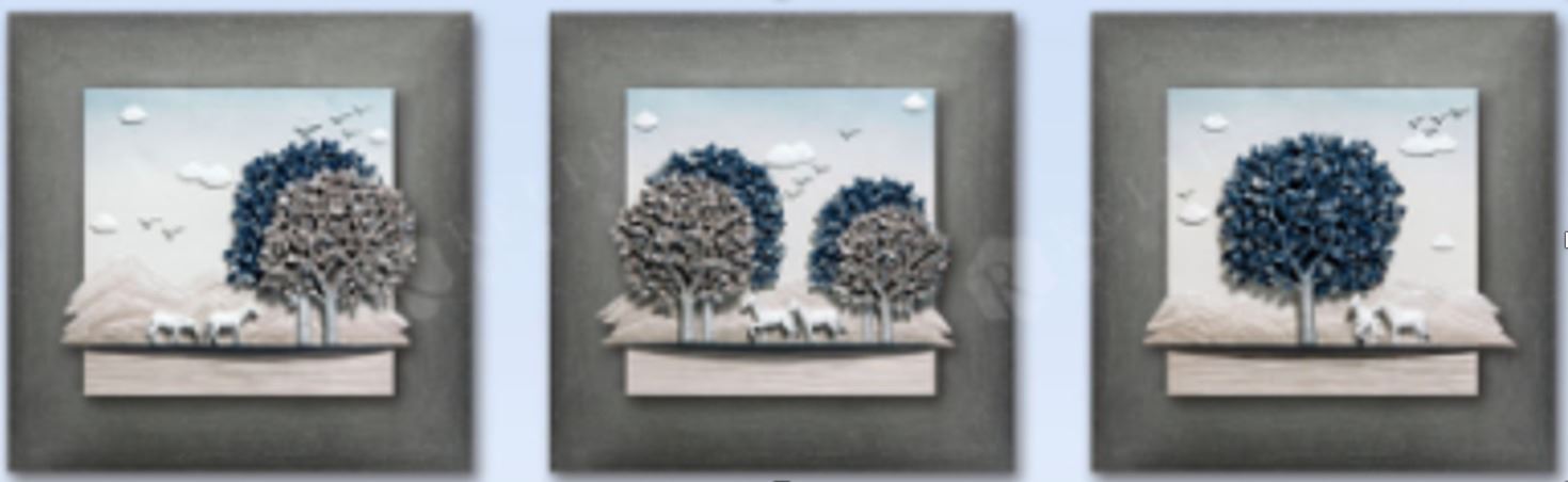 Light Clouds and Breeze (Silver) - Luxury Wall Art with frame - 60 x 60 cm x 3 panels (New in Box)