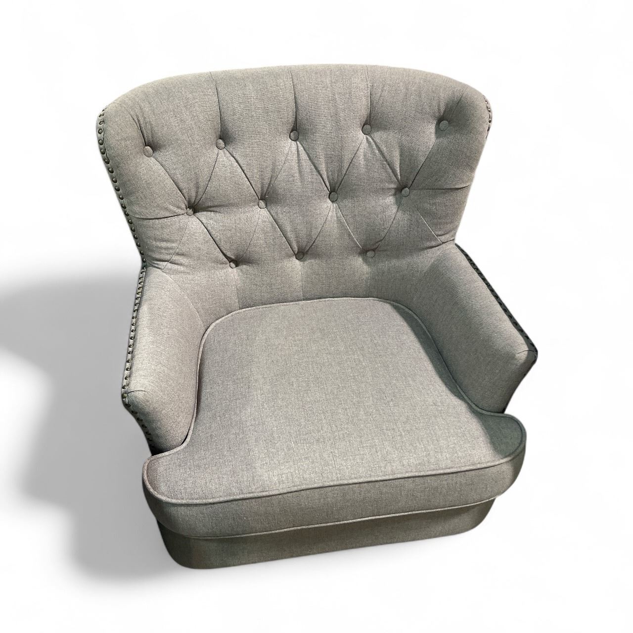 Light Grey Tufted Armchair with Nailhead Trim – RV: $489 CAD