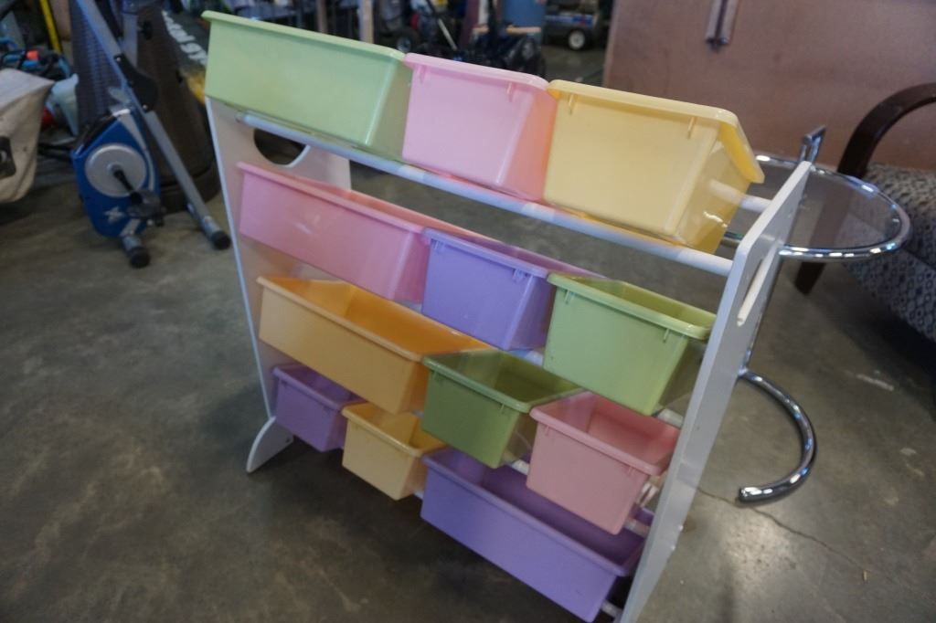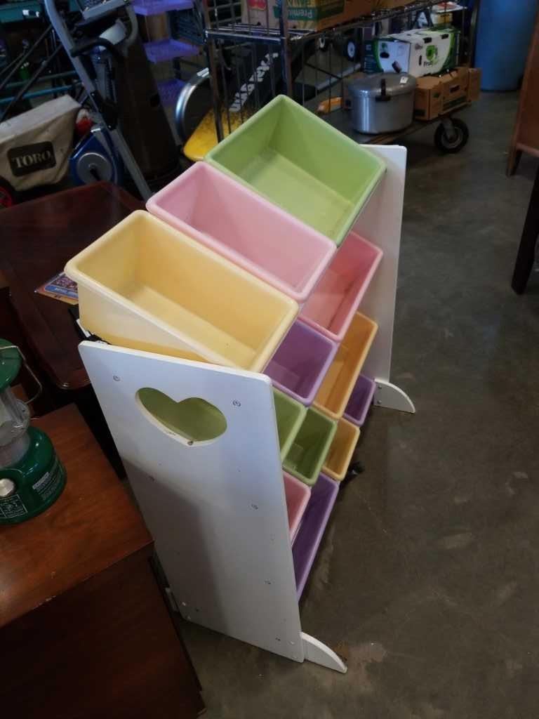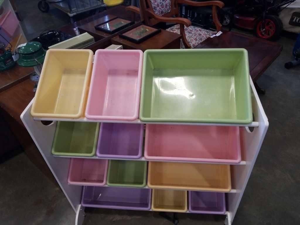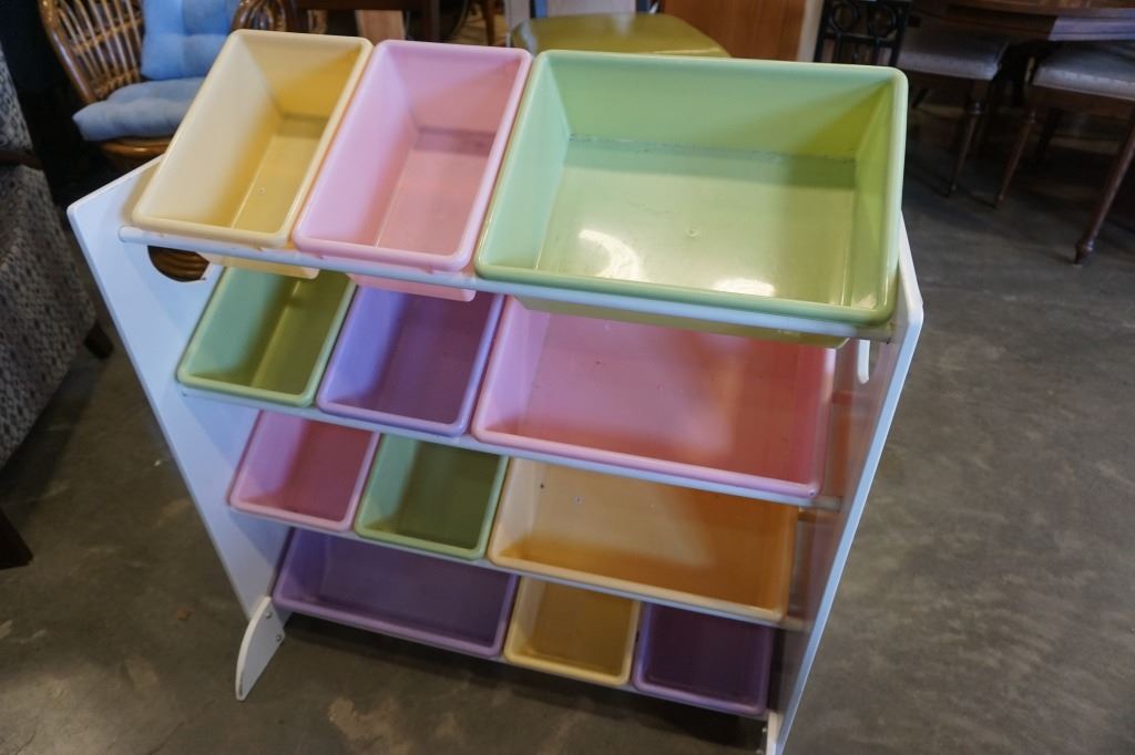 Light coloured toy organizer with totes
