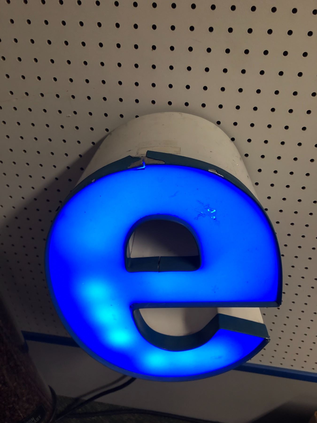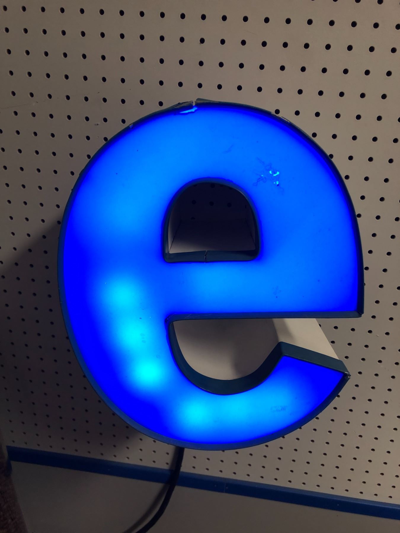 Lighted letter "e" blue - 11in across x 13 /12in tall x 8 1/2in deep