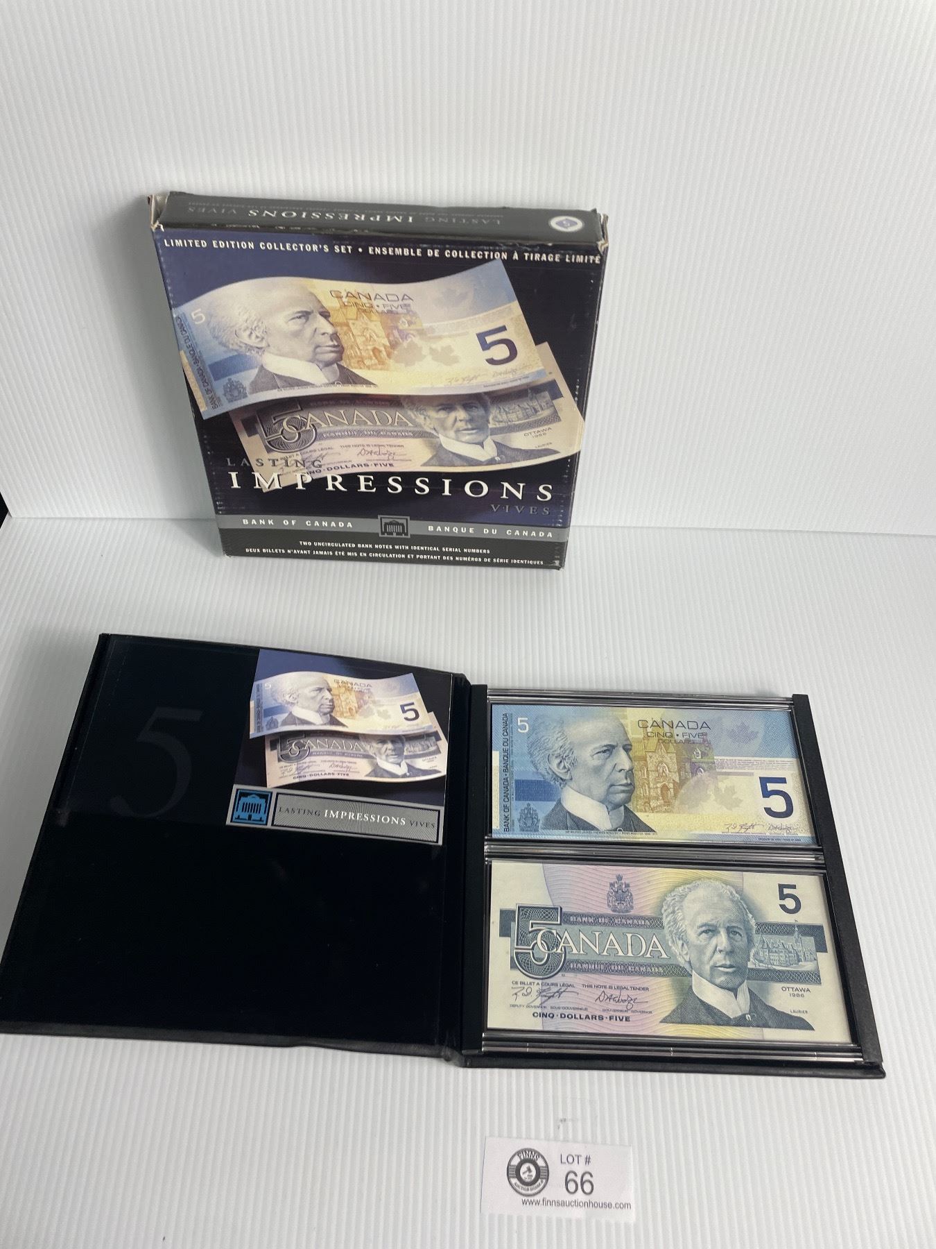 Limited Ed. Collector Set Lasting Impressions Two Uncirculated Bank Notes w/ Identical Serial Numbers