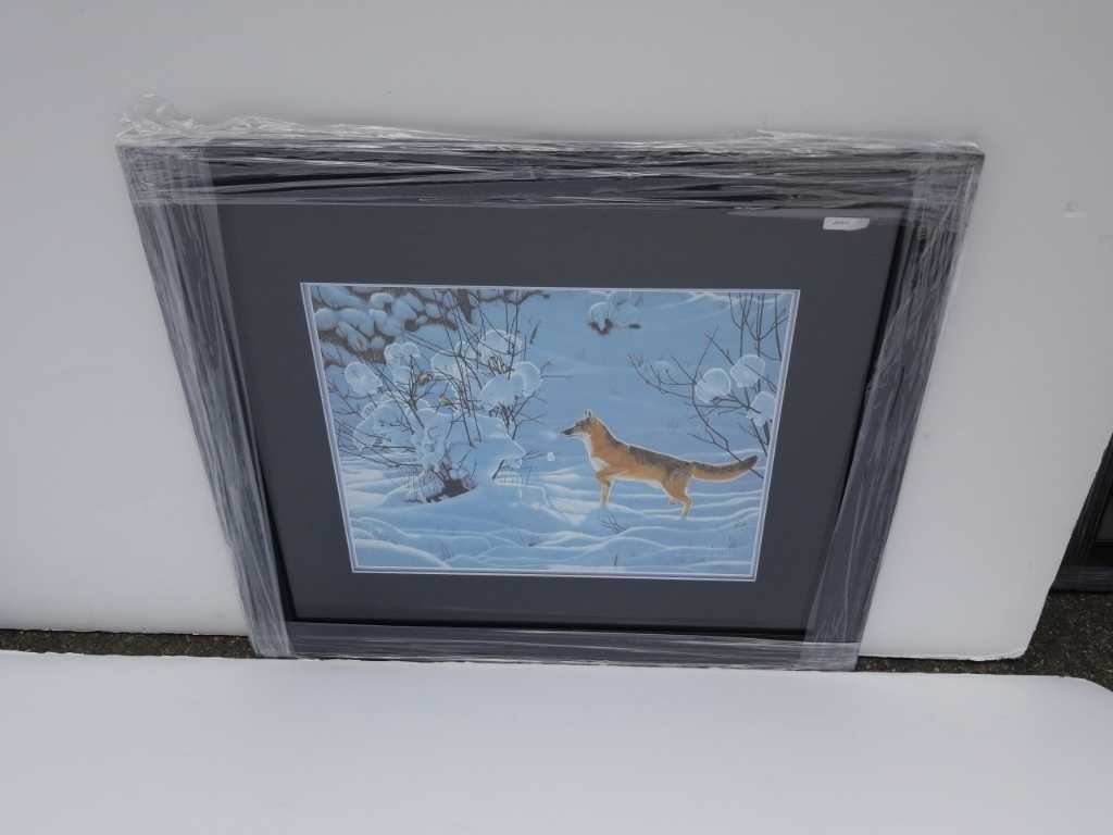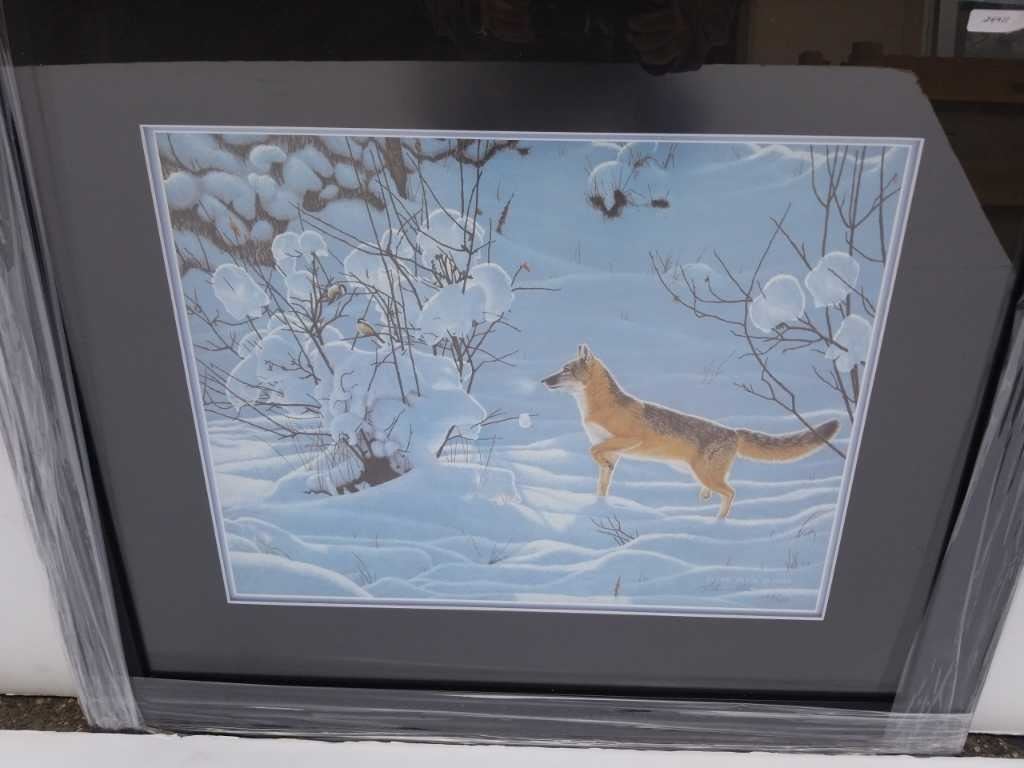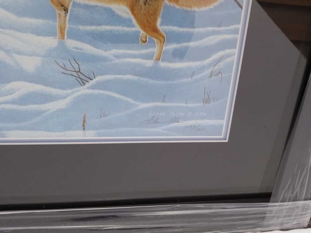 Limited edition print Temptation swift fox and chickadees by Glenn Olson signed and numbered - overall size 32 1/2 inches x 28 inches