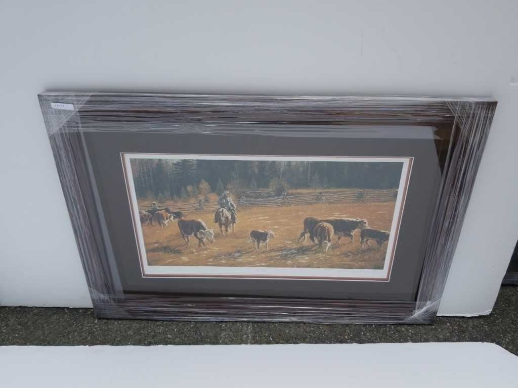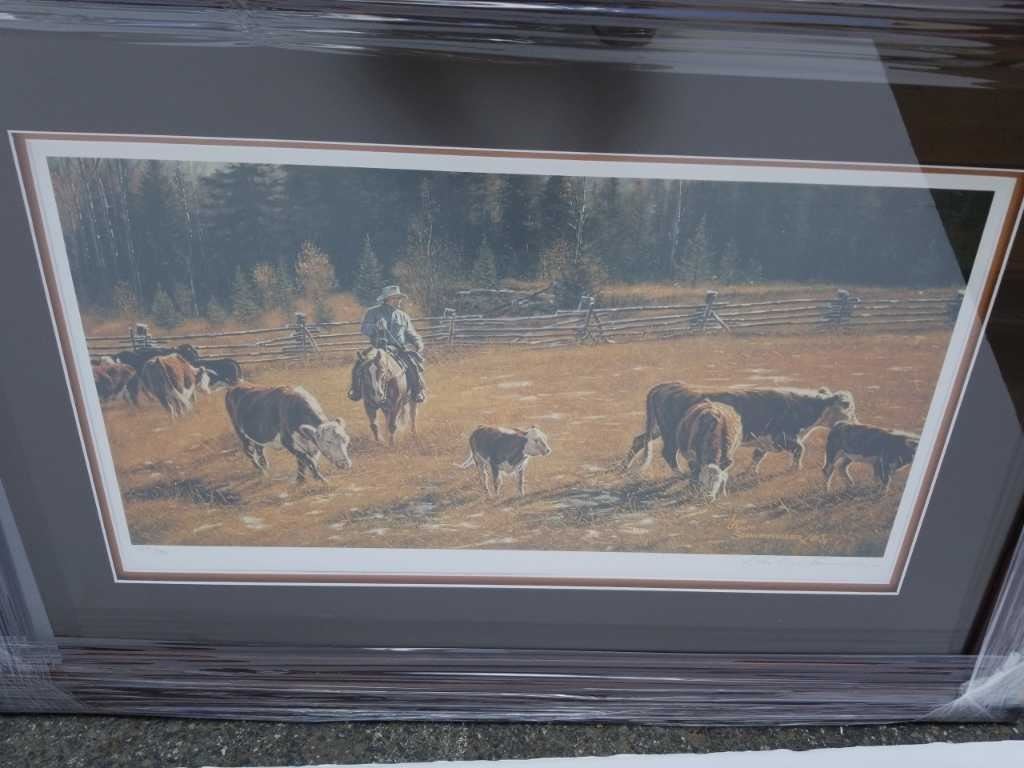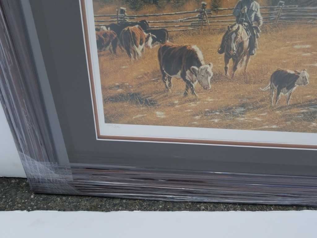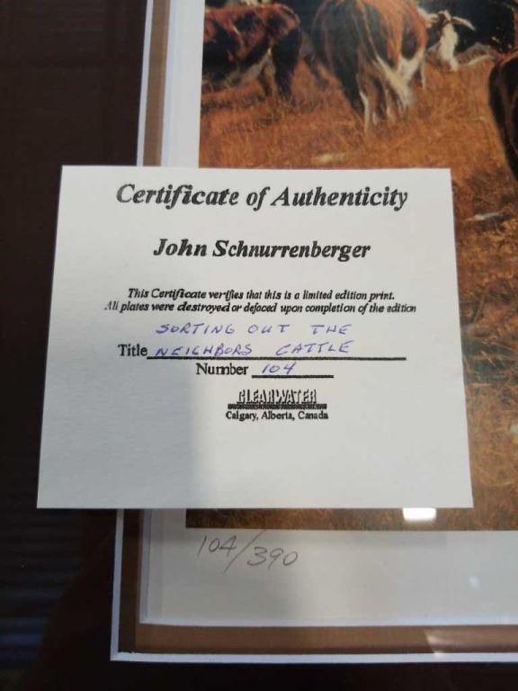 Limited edition print sorting out the neighbor's cattle by John Schnurrenberger signed and numbered with coa - overall size 36 inches x 24 inches