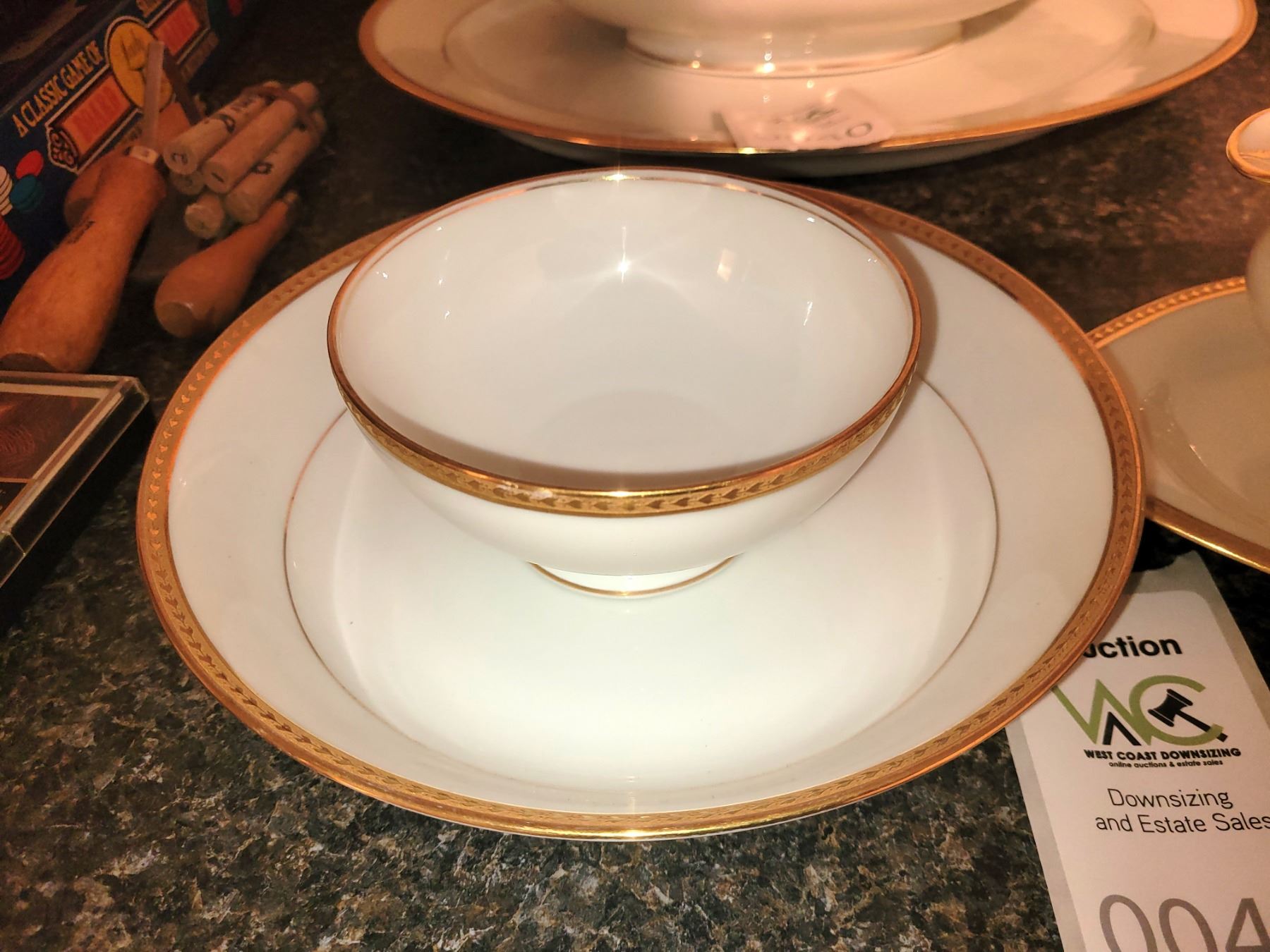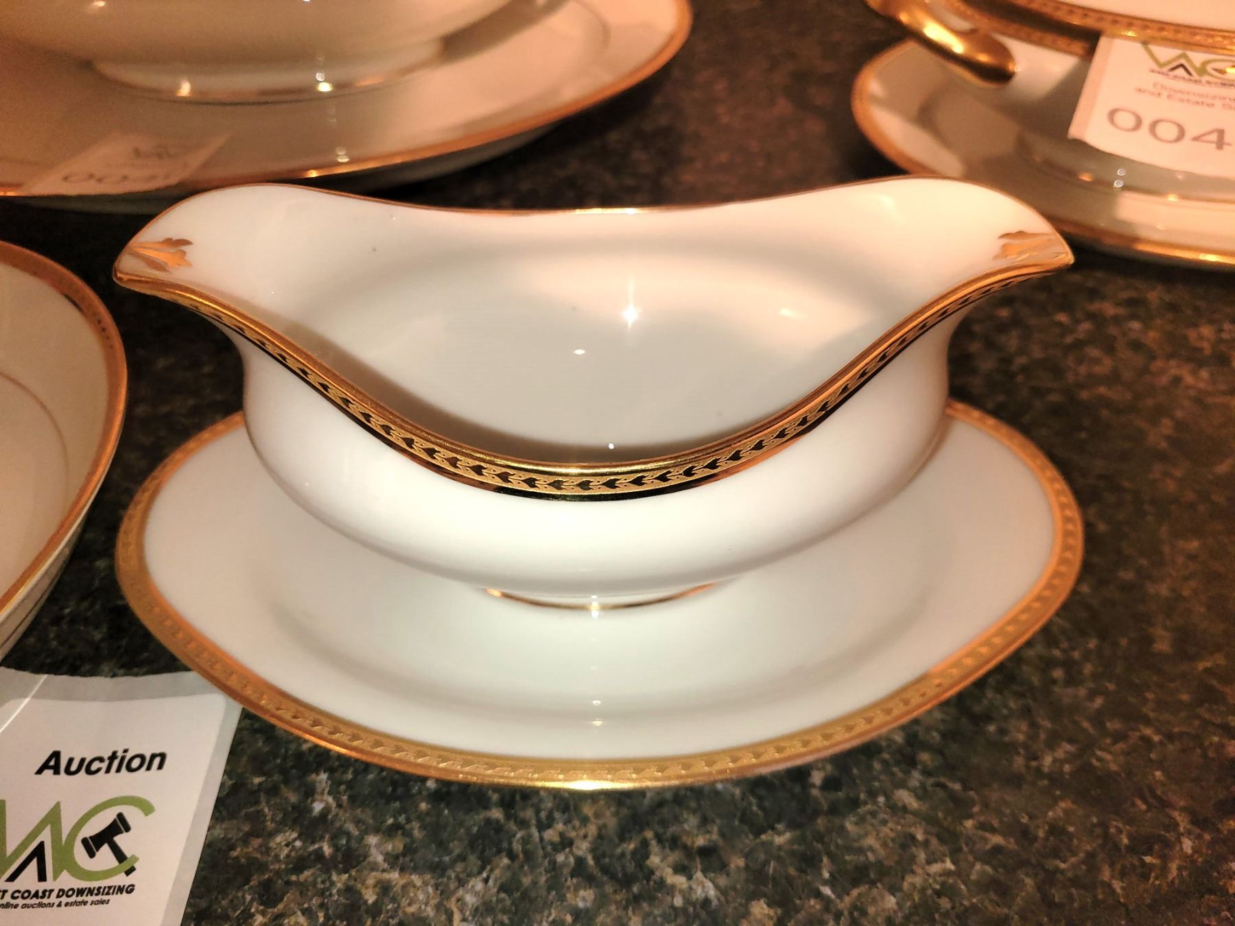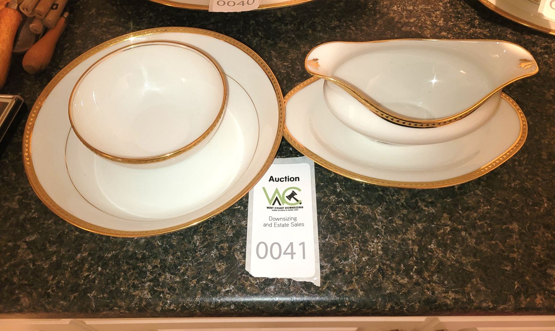 Gravy boat with spill tray,b8" round serving bowl and small bowl. Puckup at 9 am