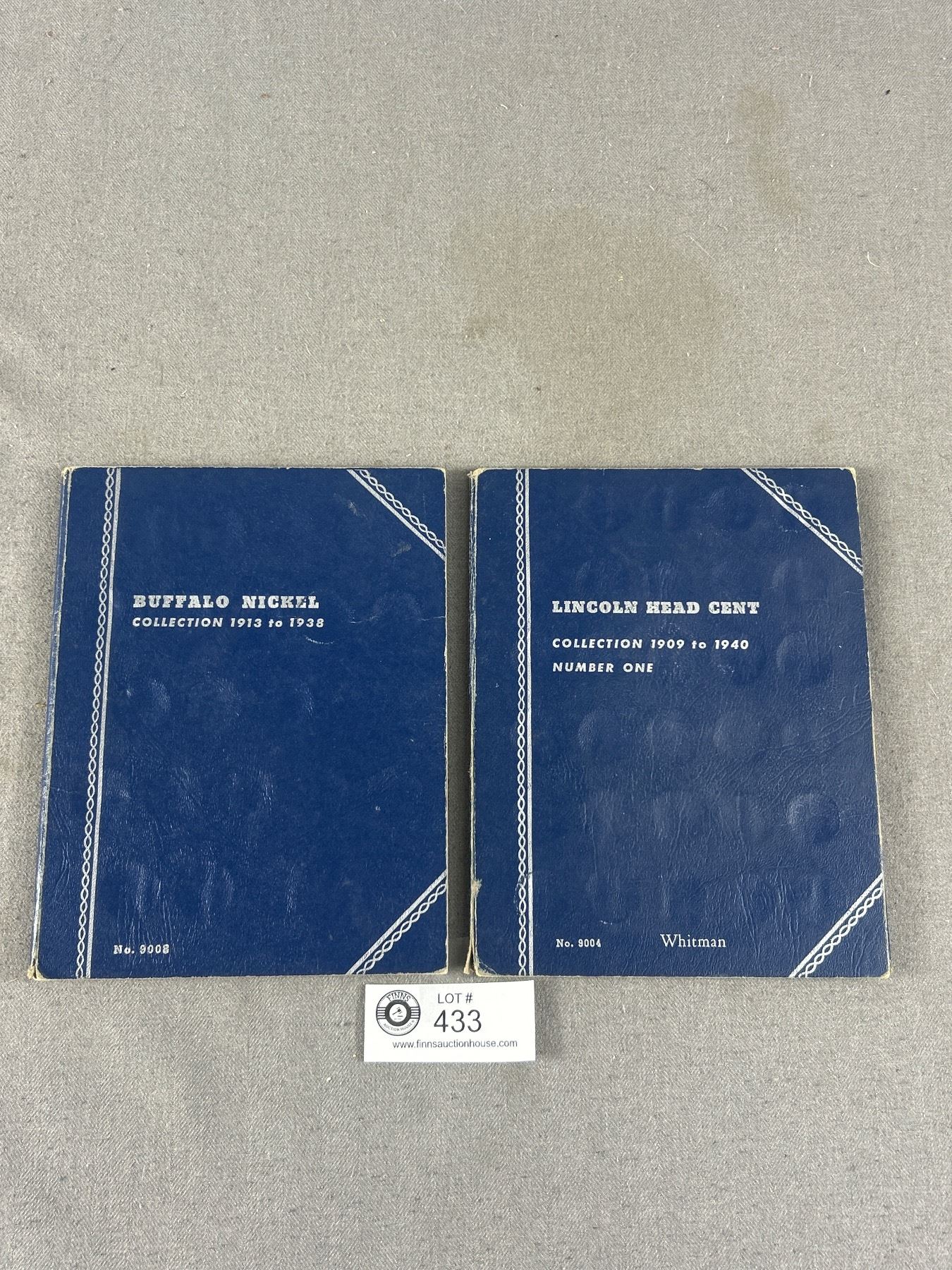 Lincoln Cents In 1909-1940 Whitman Album, Partially Complete w/ Key Dates Plus Buffalo Nickel Album w/ One 1924 Nickel