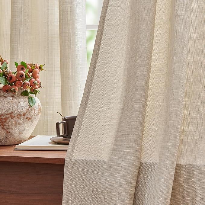 - jinchan Curtains Linen Textured Casual Weave Curtain for Living Room 84 Inches Long Grommet Drape Light Filtering Window Drapes Panels for Bedroom Heathered Beige (2 Panels)