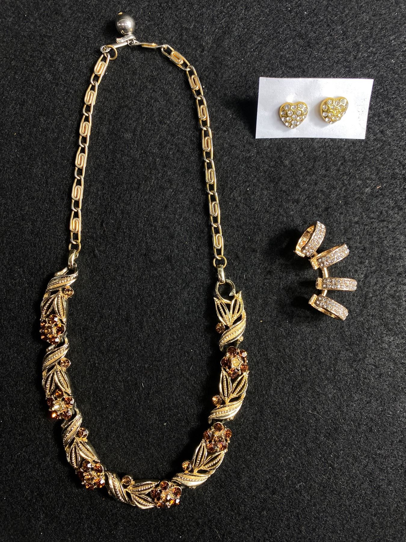 Lisner Rhinestone Necklace - Scarf Holder - Earrings
