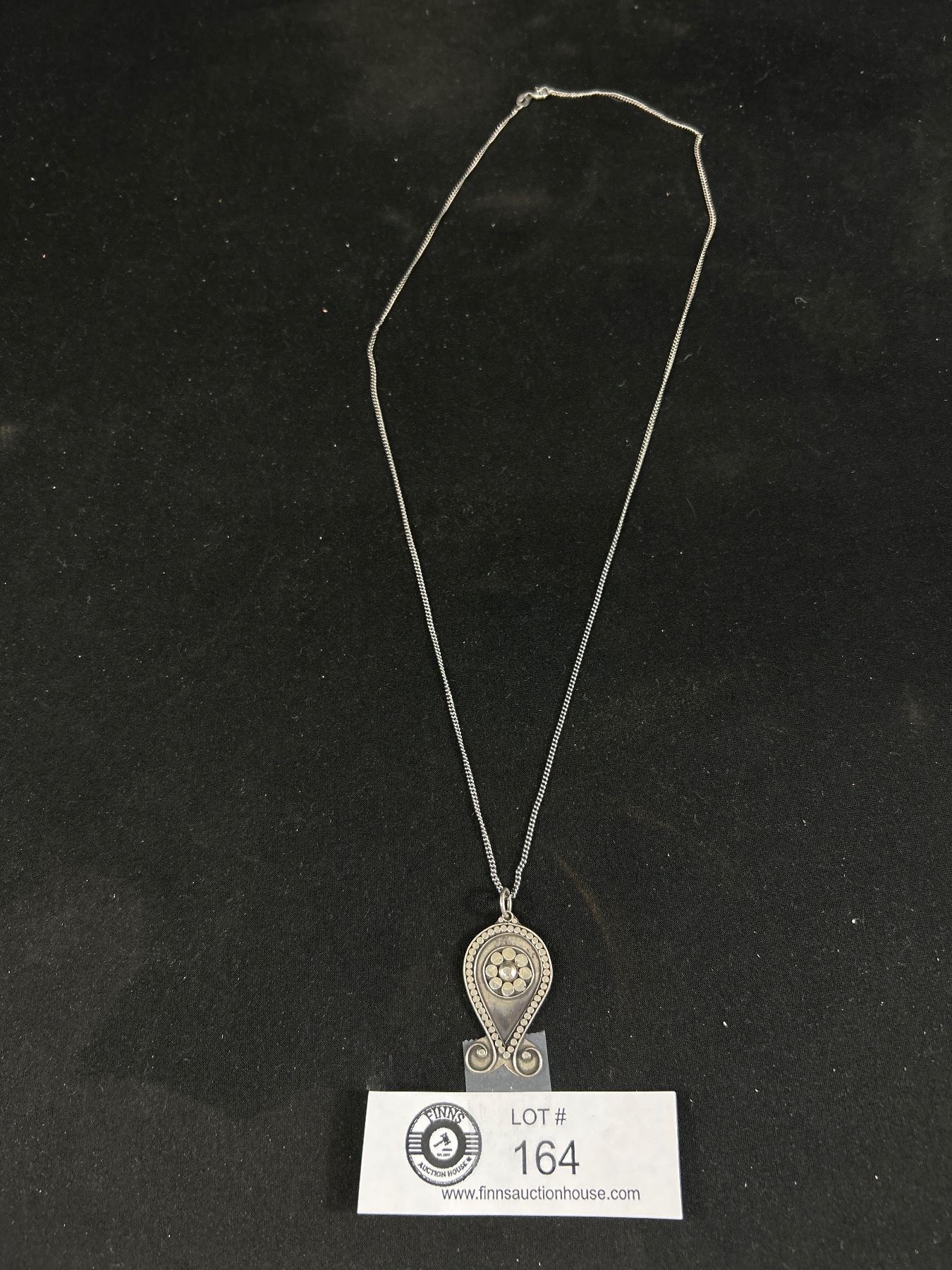 Long 925 Sterling Silver Italy Chain 24.5" With Ornate Pendant Marked 925