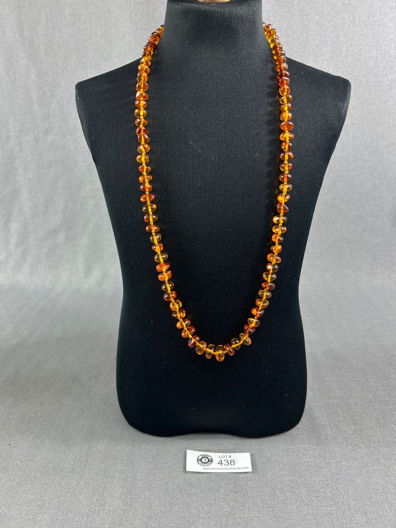 Long Amber Knot Beaded Necklace. Approx. 27"L