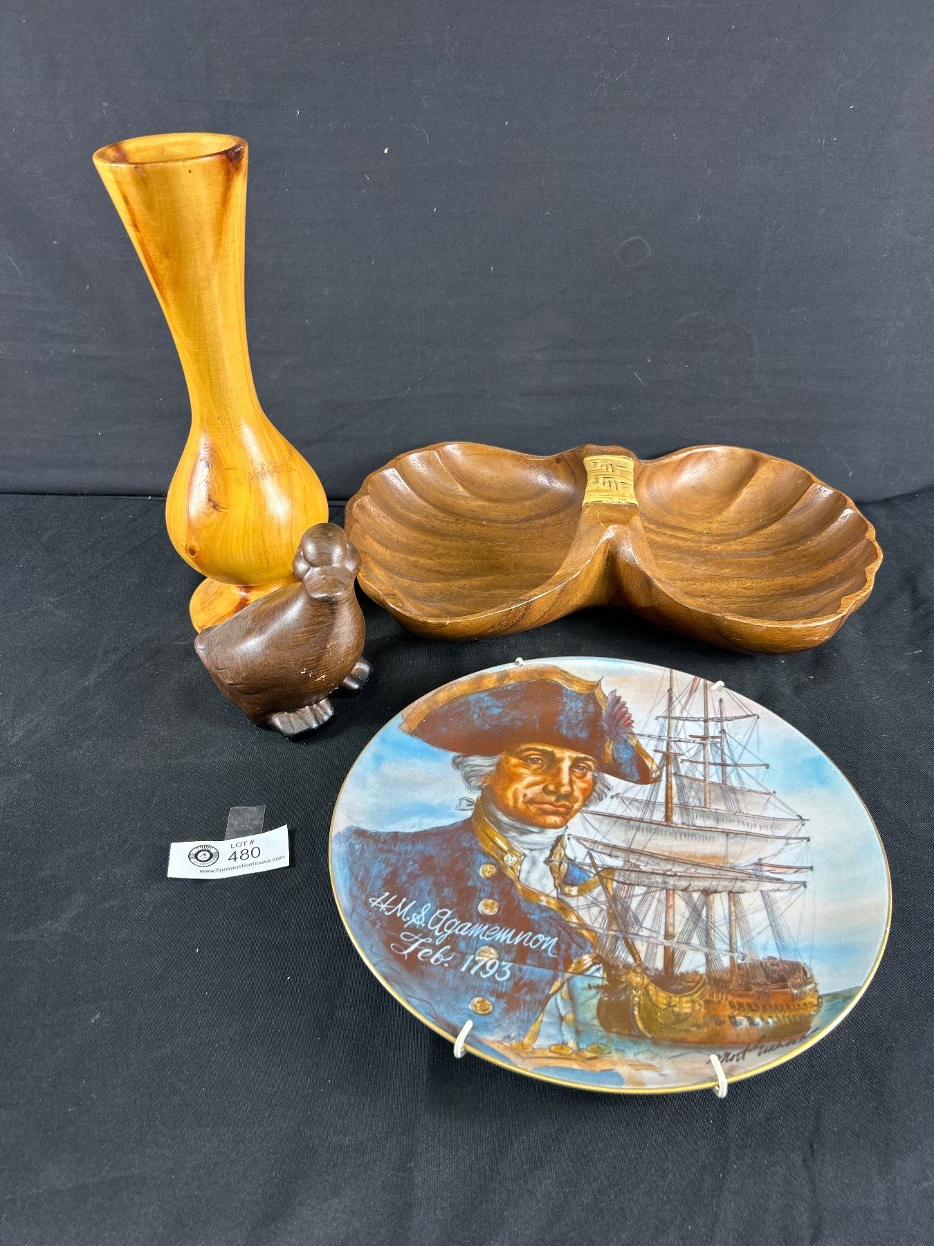 Lord Nelson Collector Plate, Pottery Duck, 11.5" Wood Vase & More