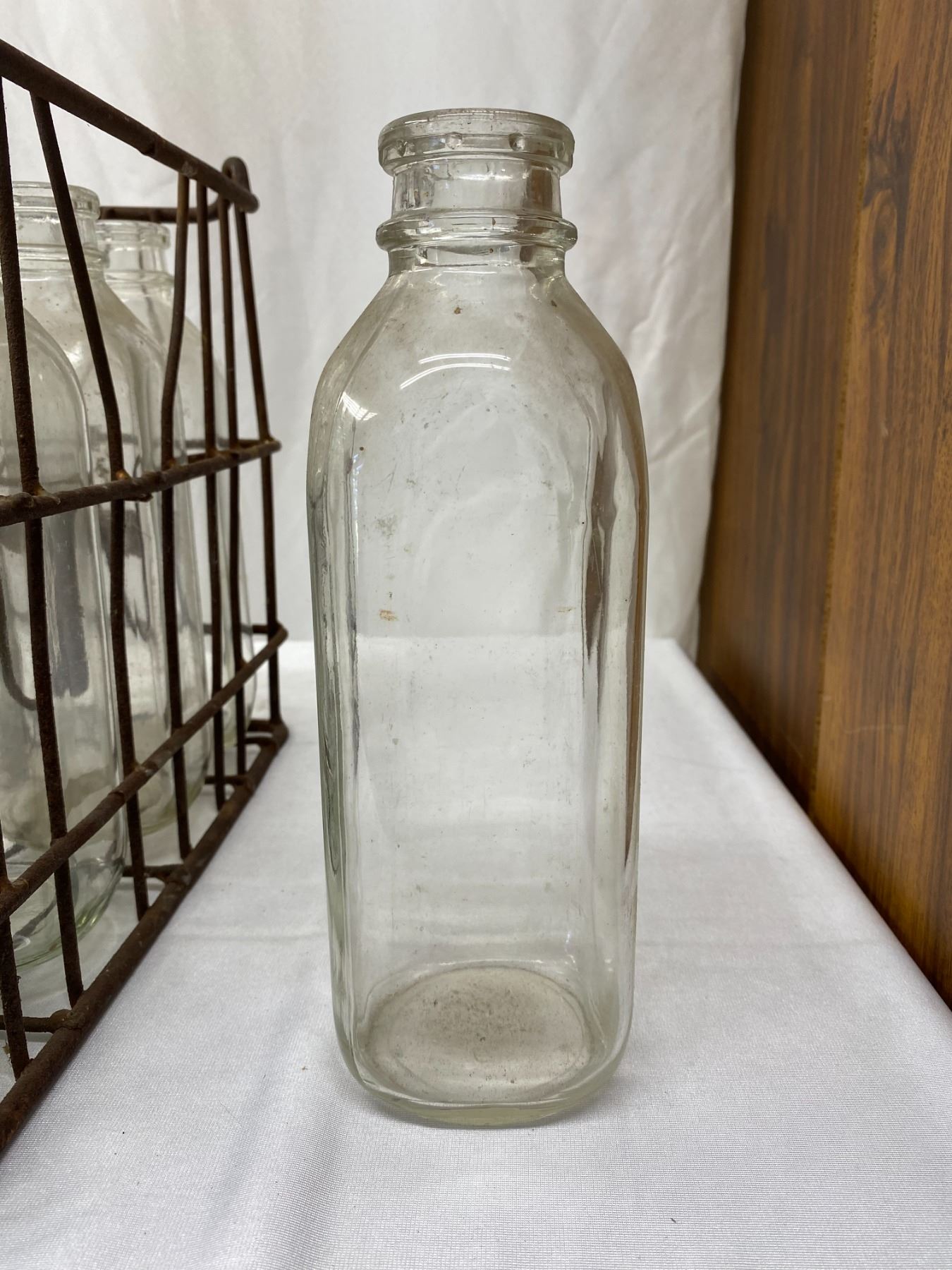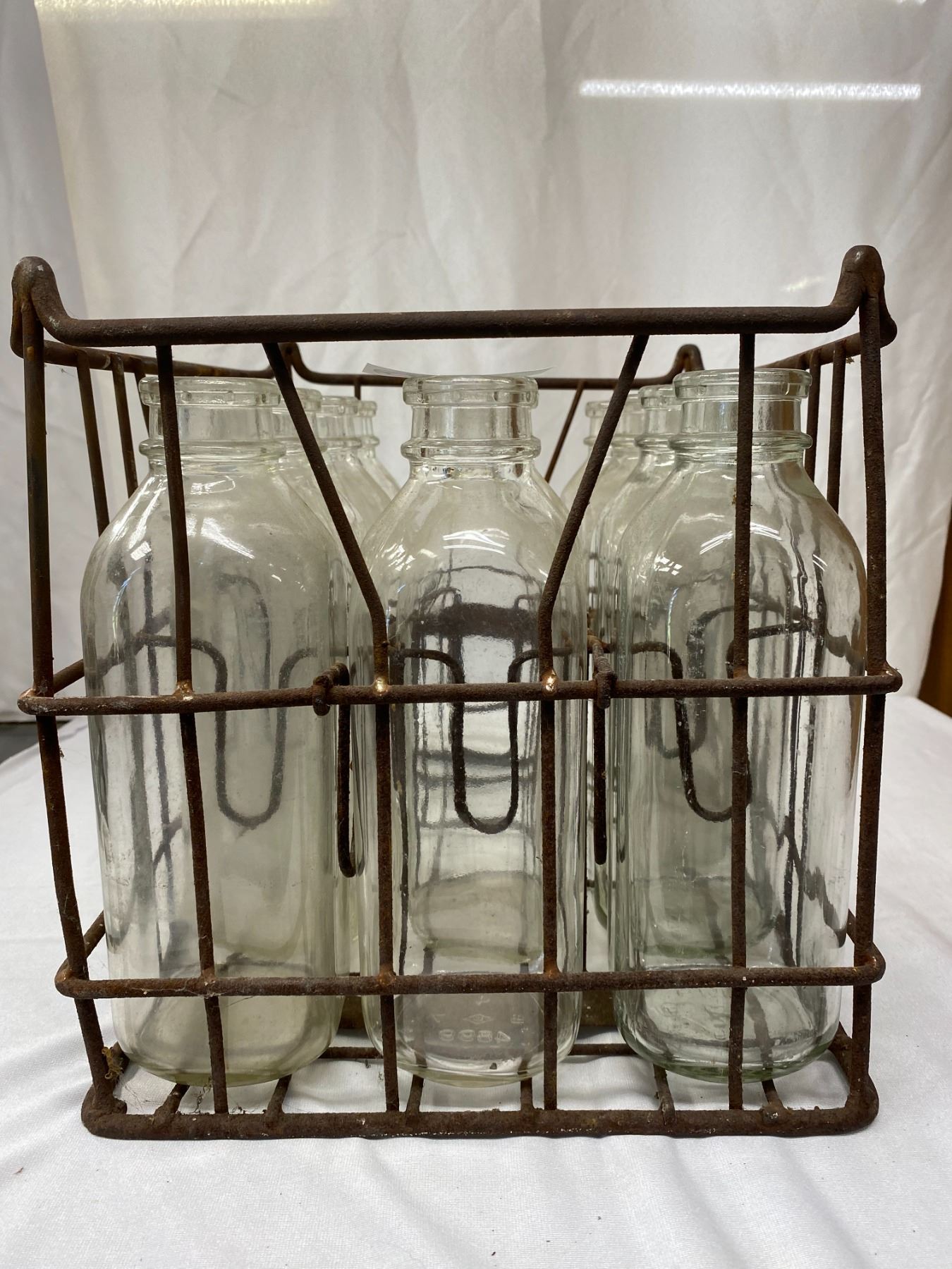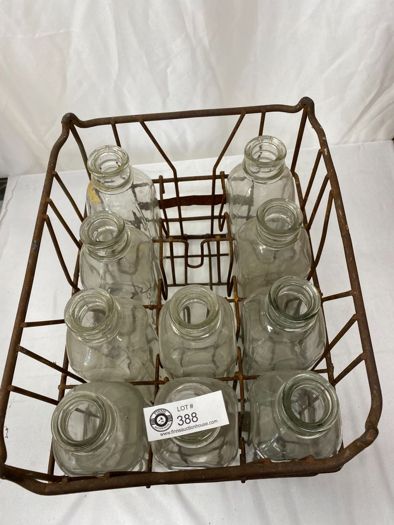Lot Of 10 Vintage Milk Bottles In Old Milk Crate