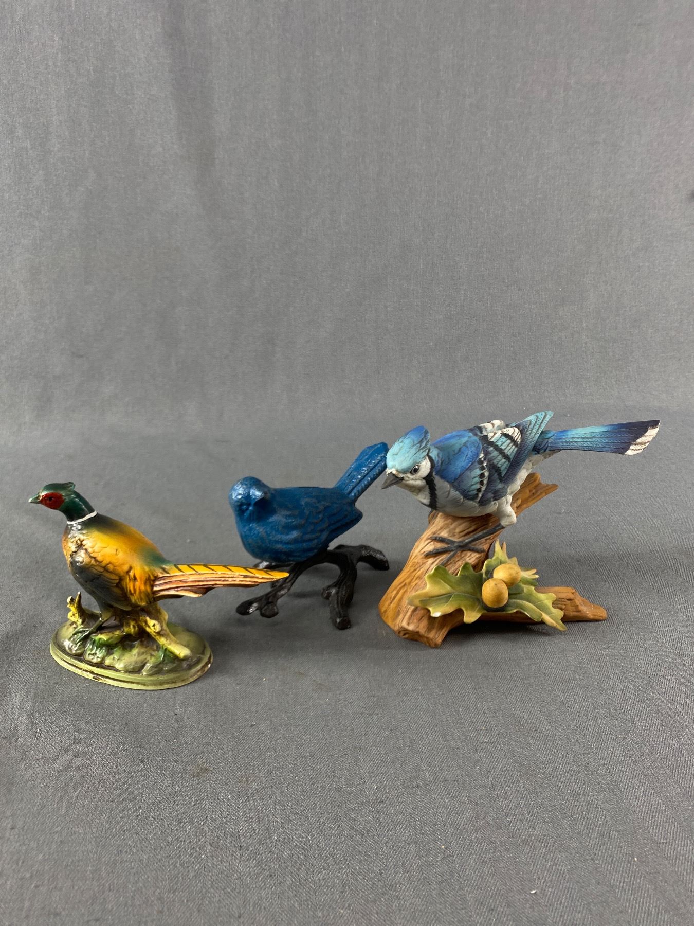 Lot Of 3 Birds - Blue Jay, Metal Blue Bird & Pheasant Made In Japan