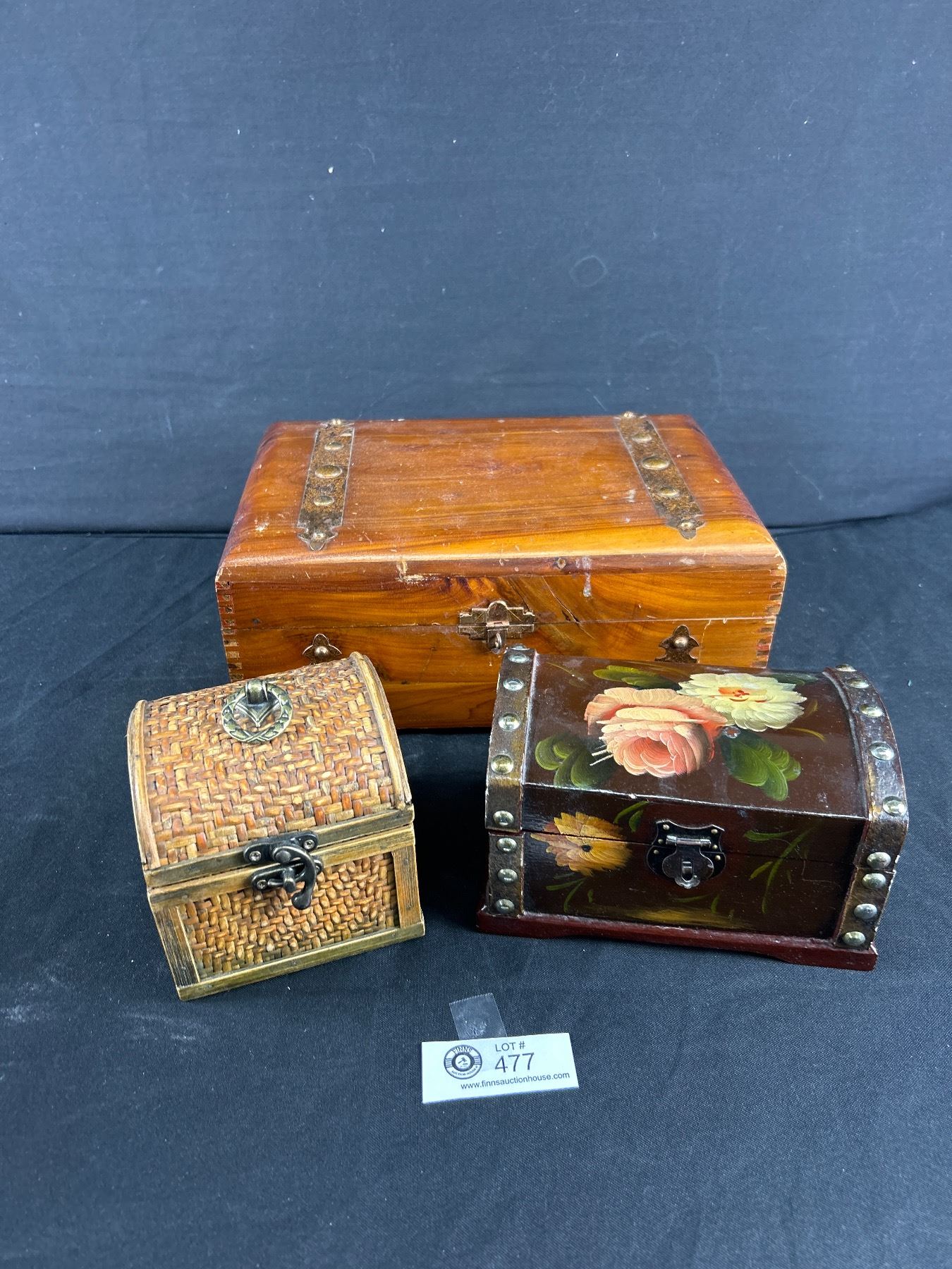 Lot Of 3 Storage Boxes. Largest Is Vintage Cedar & Approx. 12" x 8" x 5"