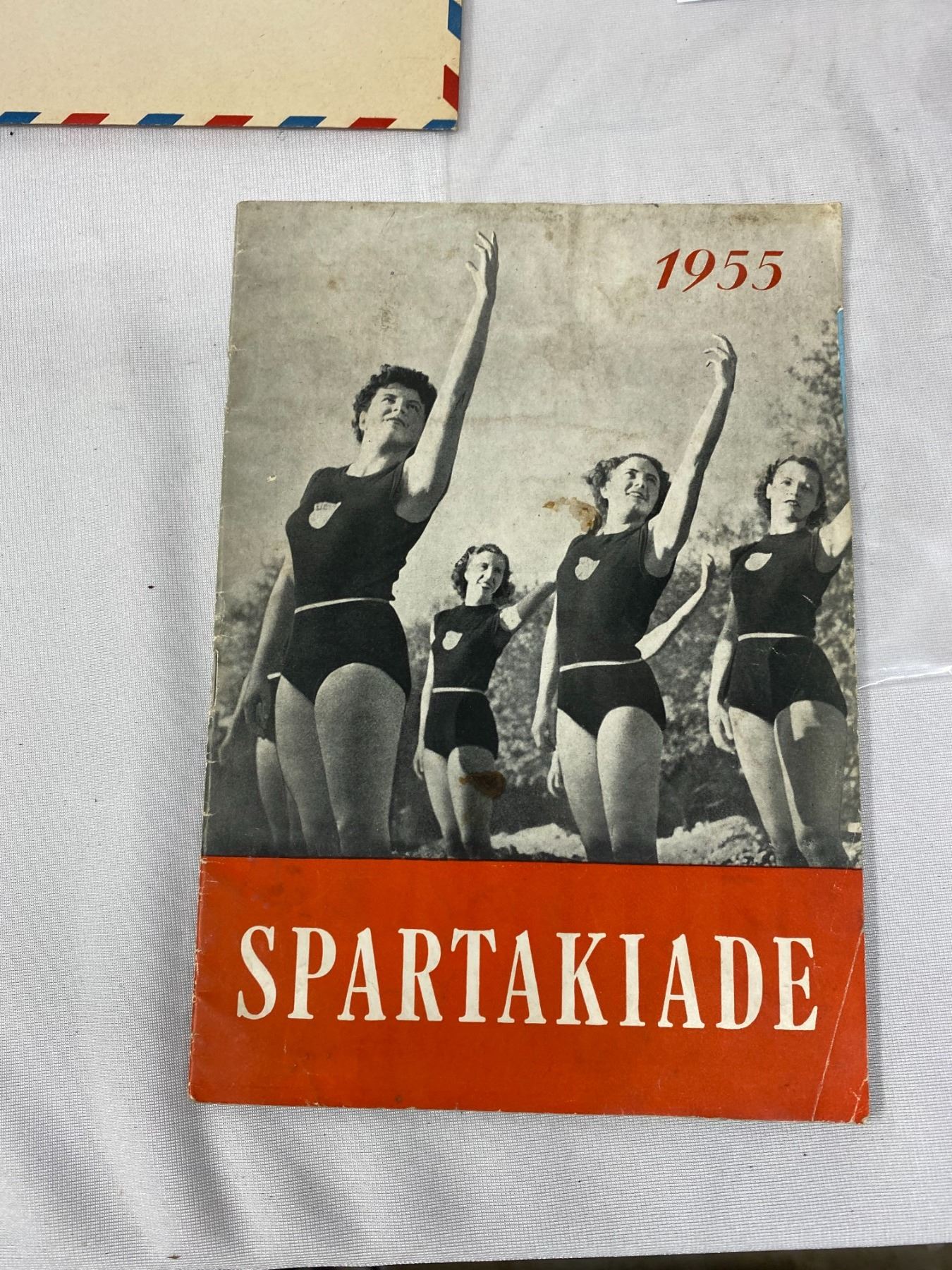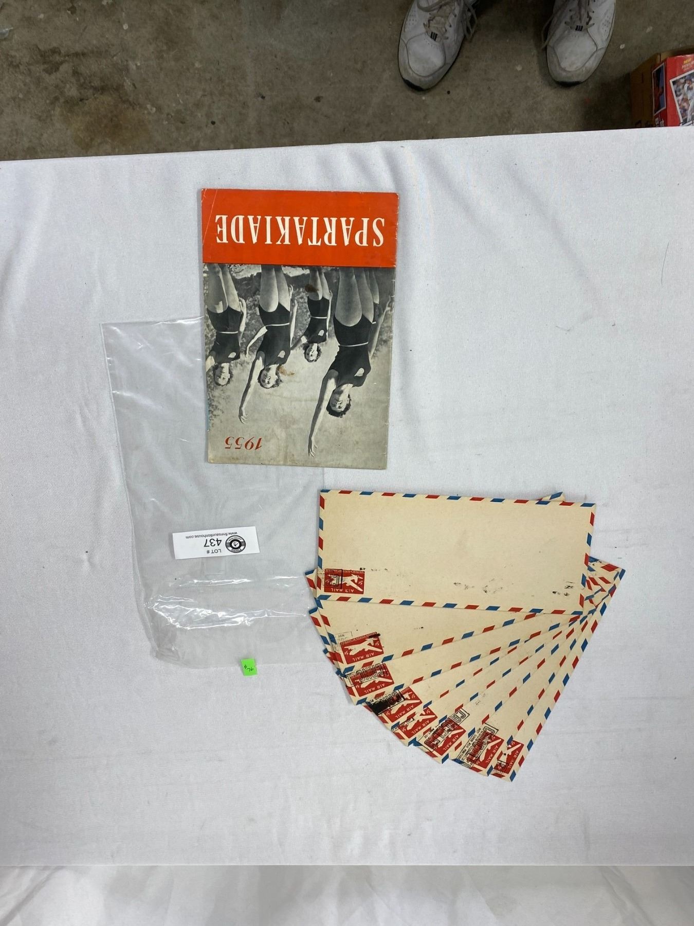 Lot Of 8 Vintage Airmail Envelopes And 1955 Spartacade Magazines