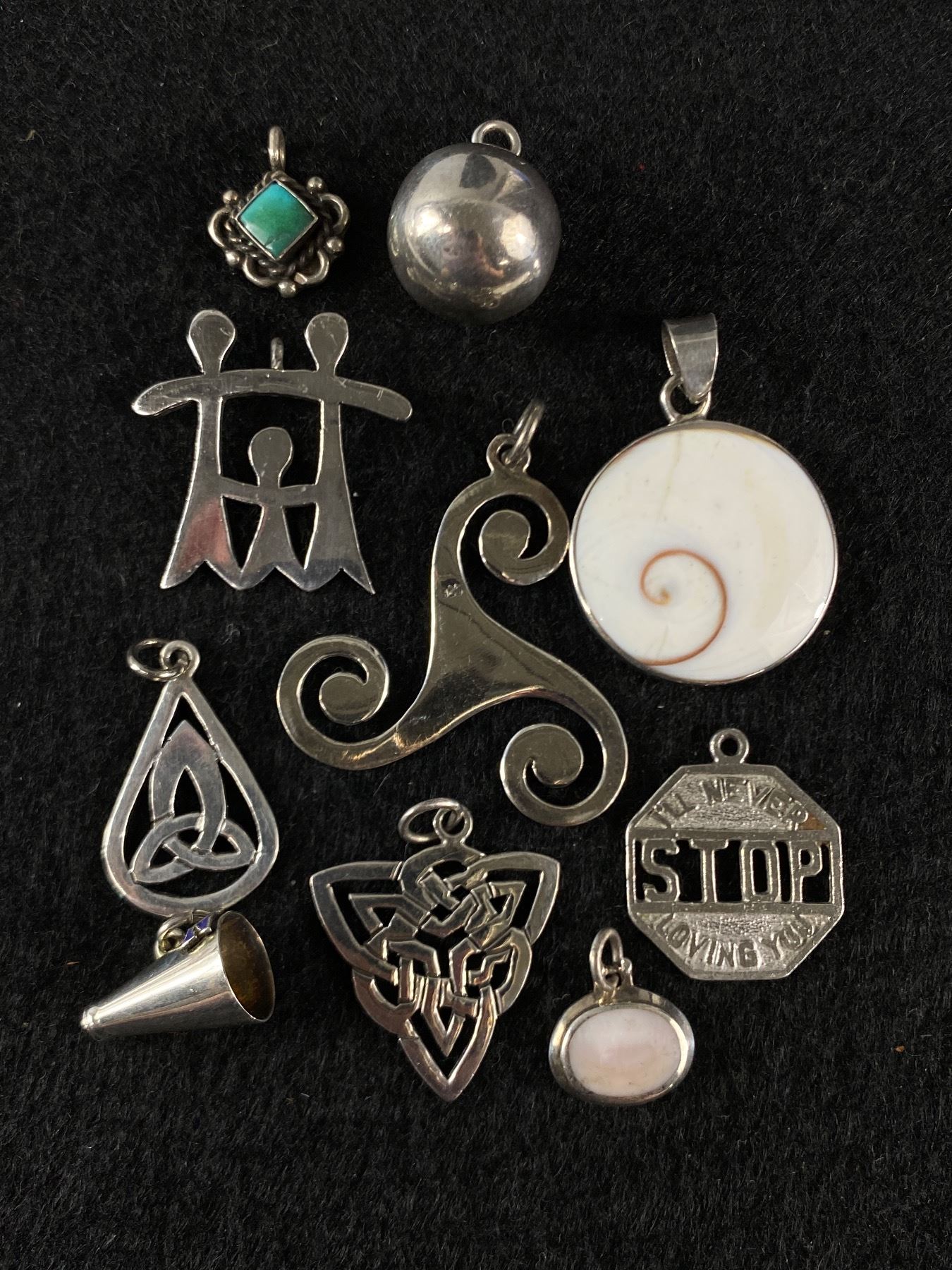 Lot Of 9 Sterling 925 Silver Pendant/Charms - Harmony Ball, Celtic, ++++. 32.6 Grams - Tested
