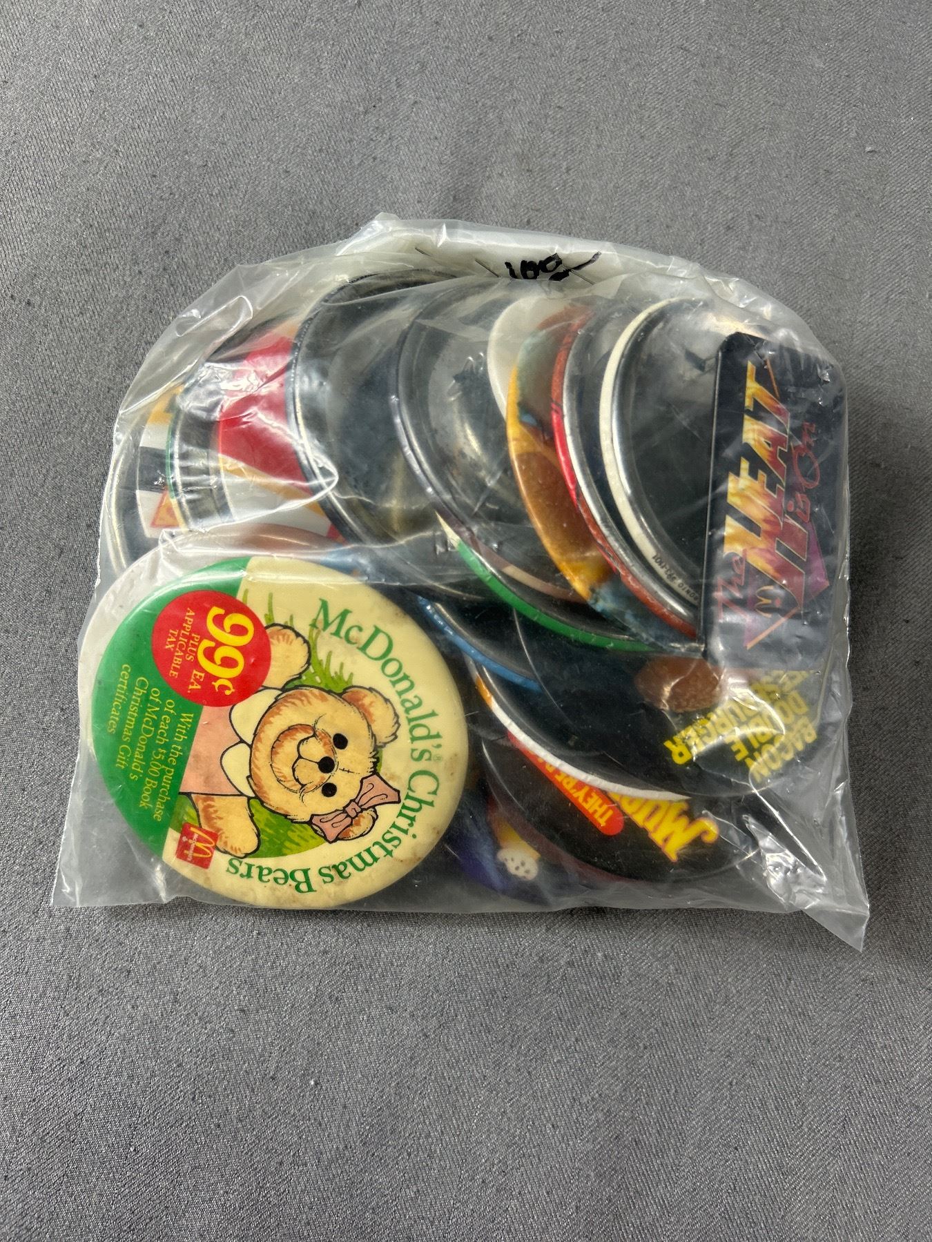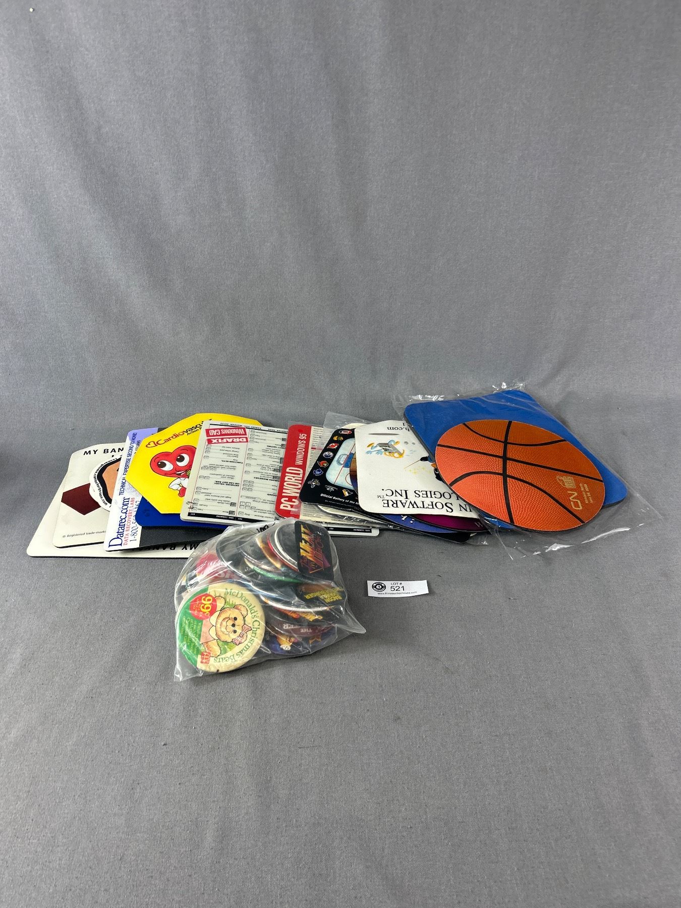 Lot Of Assorted Advertising Mouse Pads & Button Badges