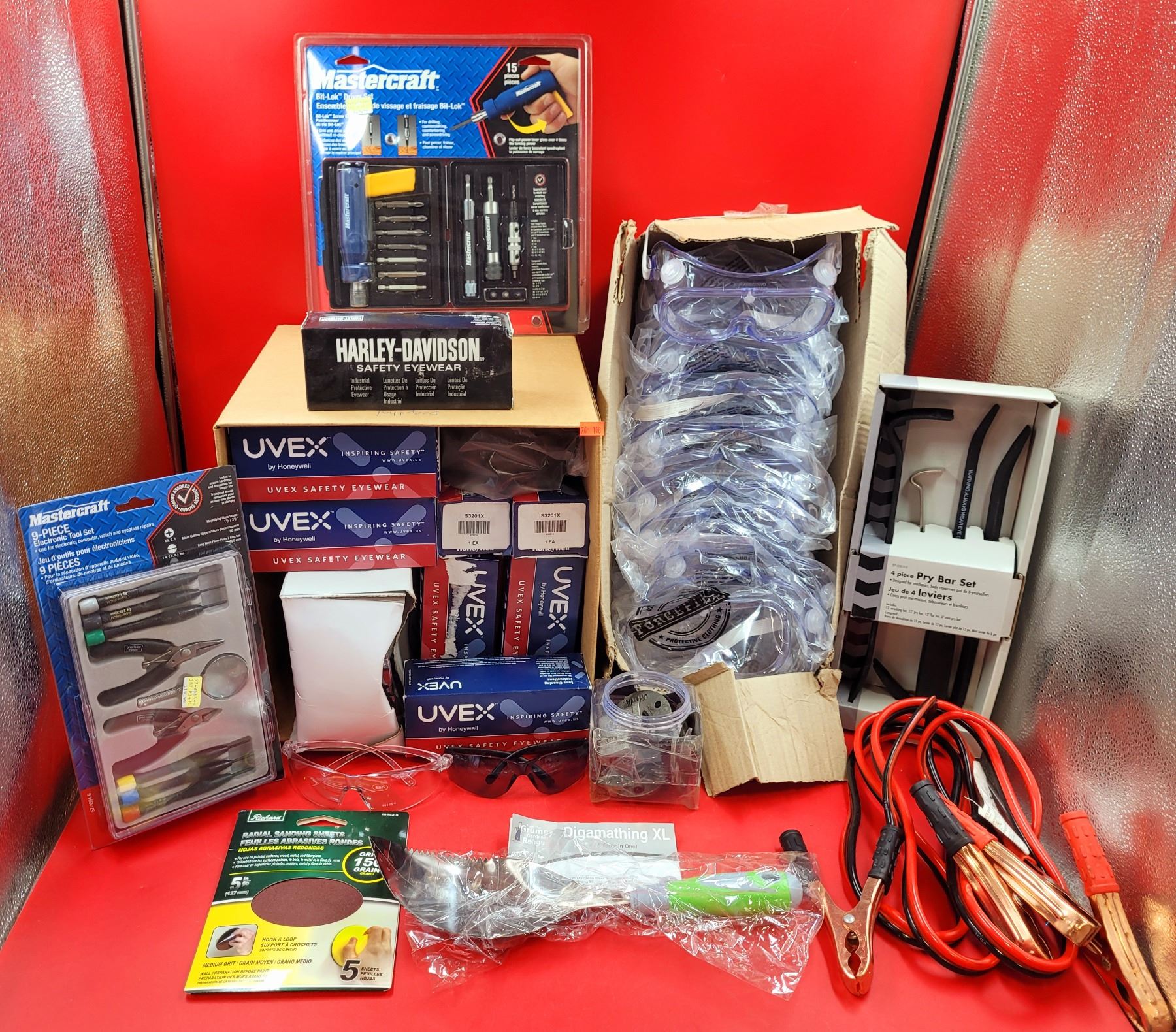 Lot Of Assorted Tools Including Safety Goggles, Bit-Lok Driver Set & 9-Piece Electronic Tool Set