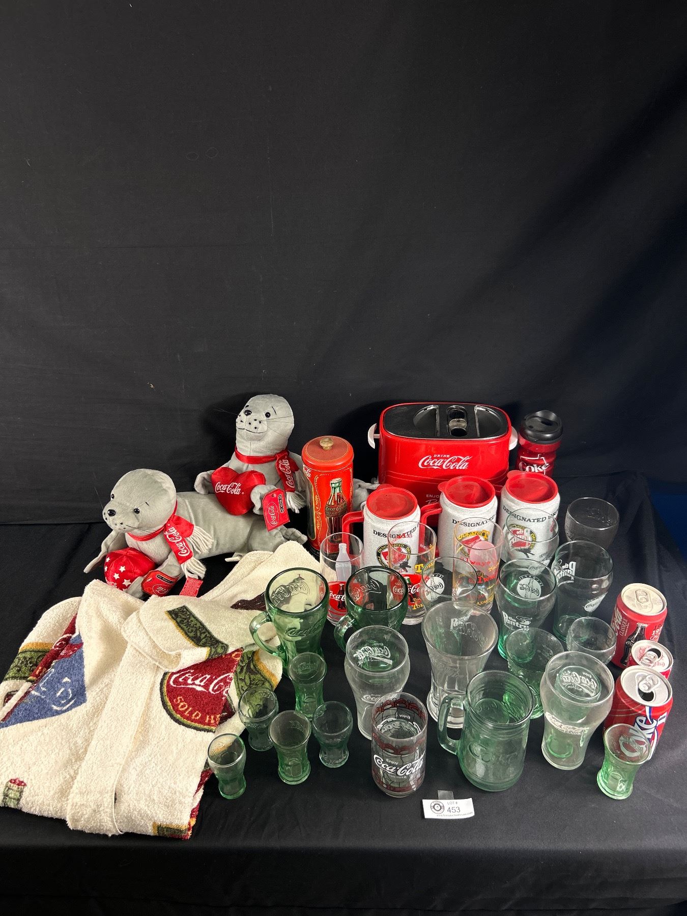 Lot Of Coca-Cola Glasses, Mugs, Seal Plushes & More
