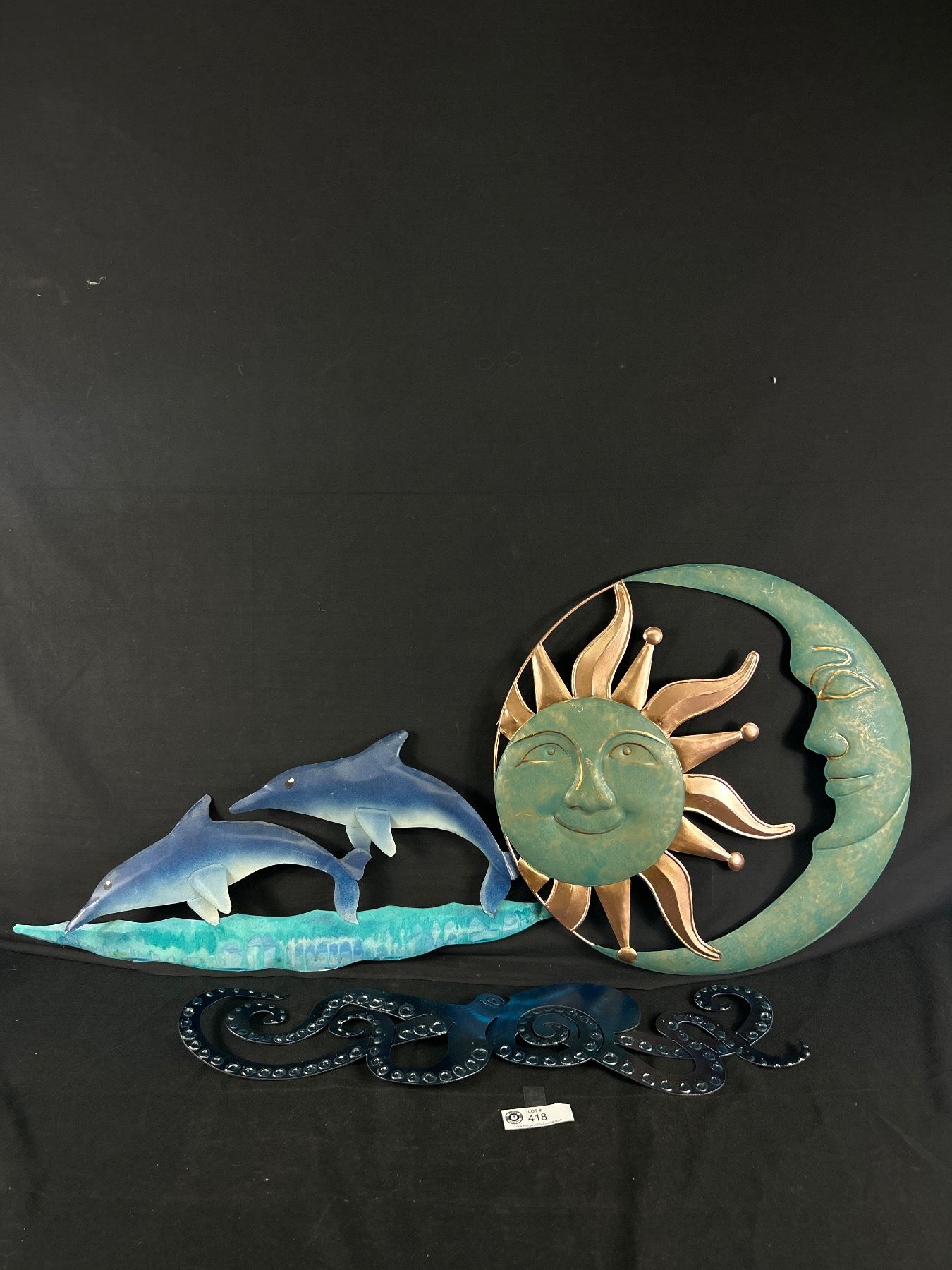 Lot Of Metal Art - Moon/Sun (18"), Dolphins (24") & Octopus (23")