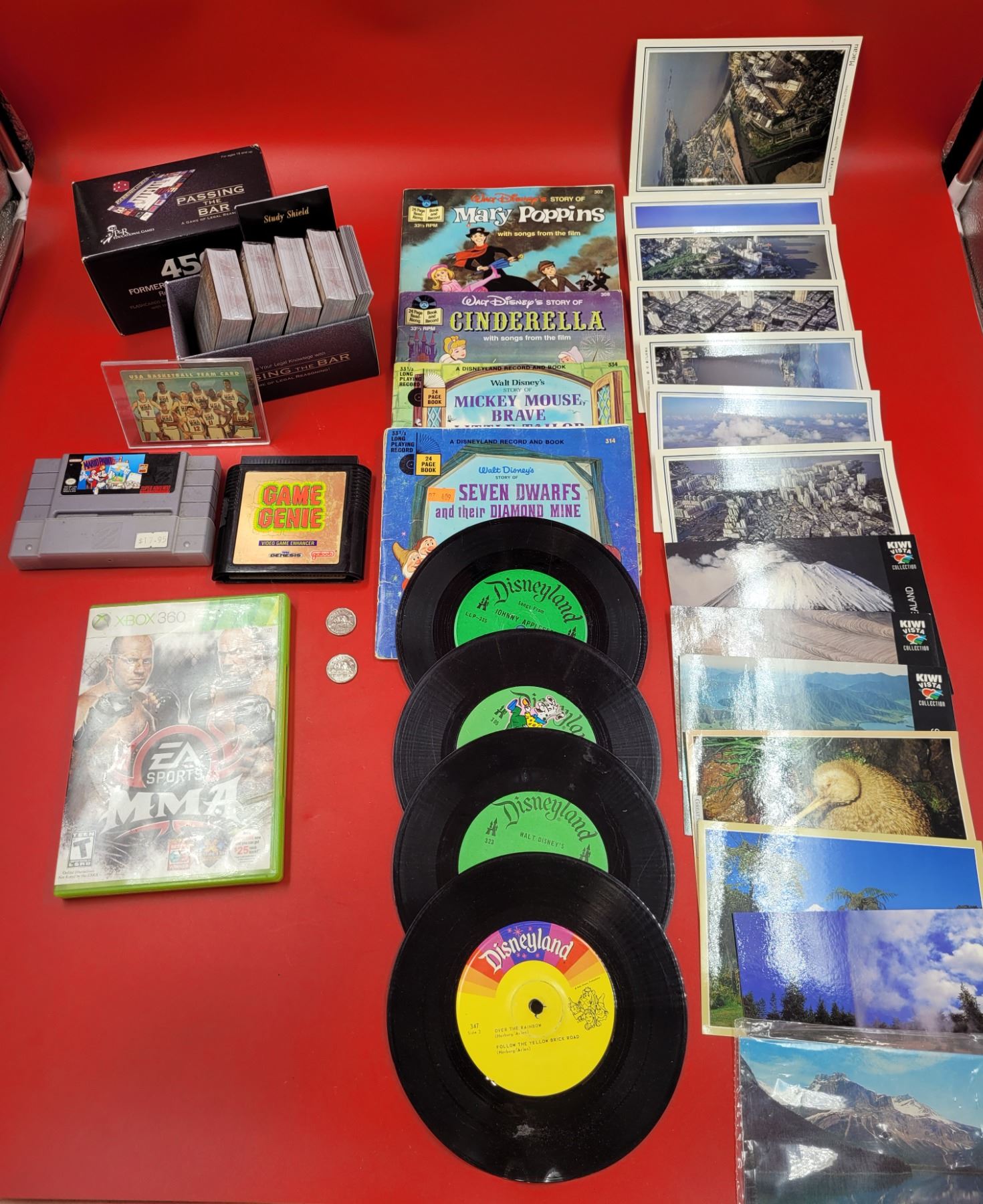 Lot Of Misc. 45RPM Records, Photographs & Video Games