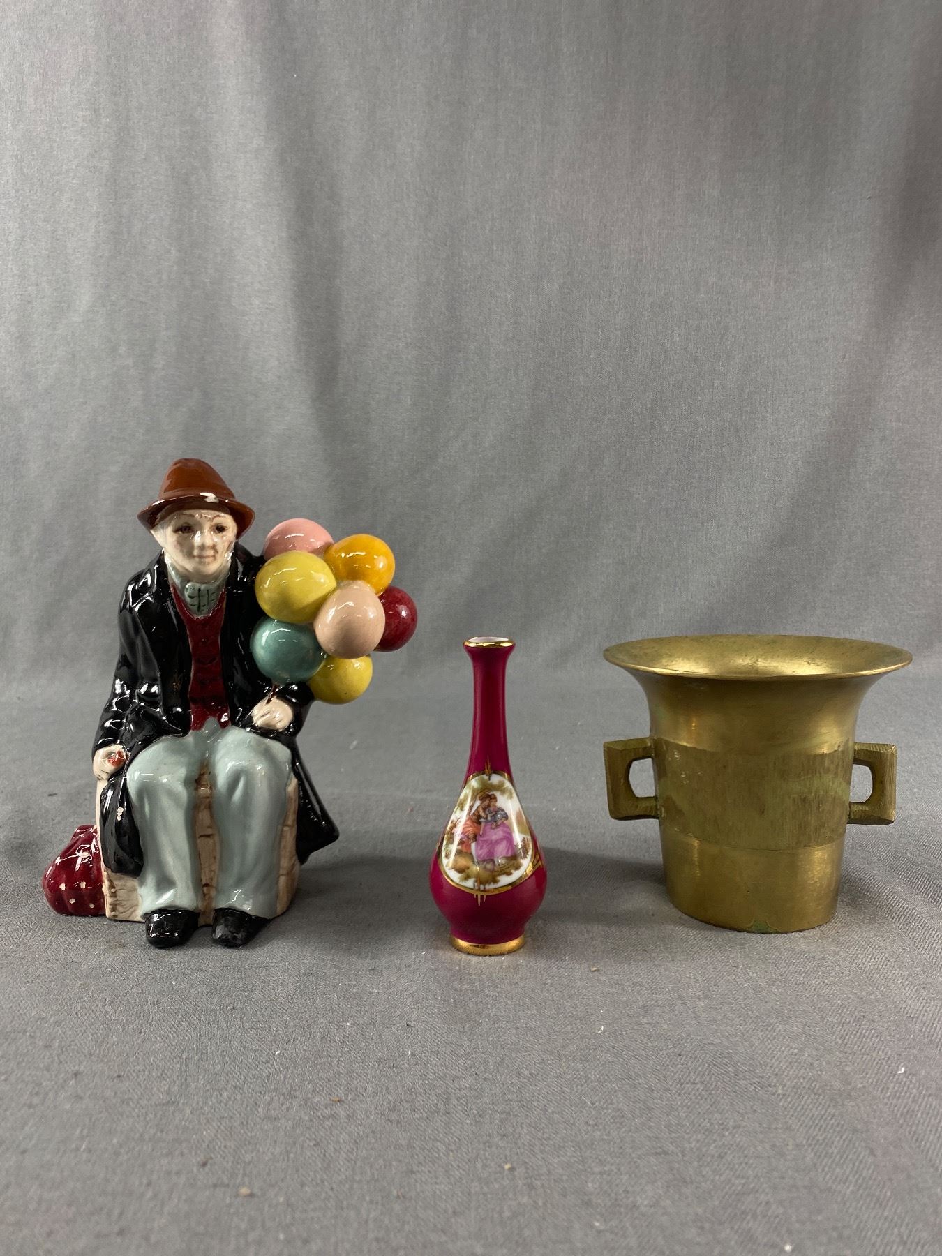 Lot Of Misc Vintage Décor - 4" Limoges France Vase, Porcelain Balloon Man & Brass Incense Pot