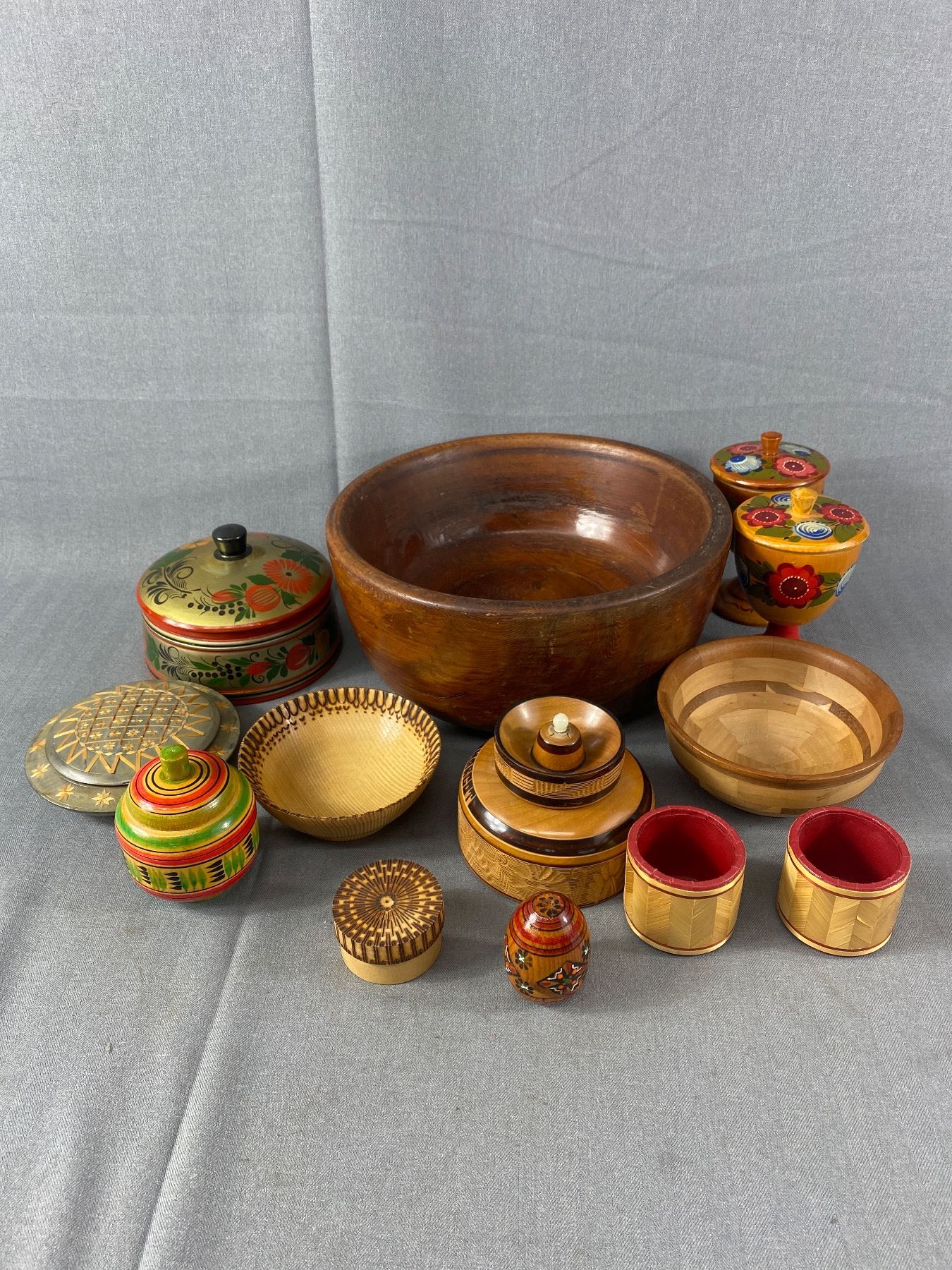 Lot Of Various Wood Bowls - Some Handpainted & Carved
