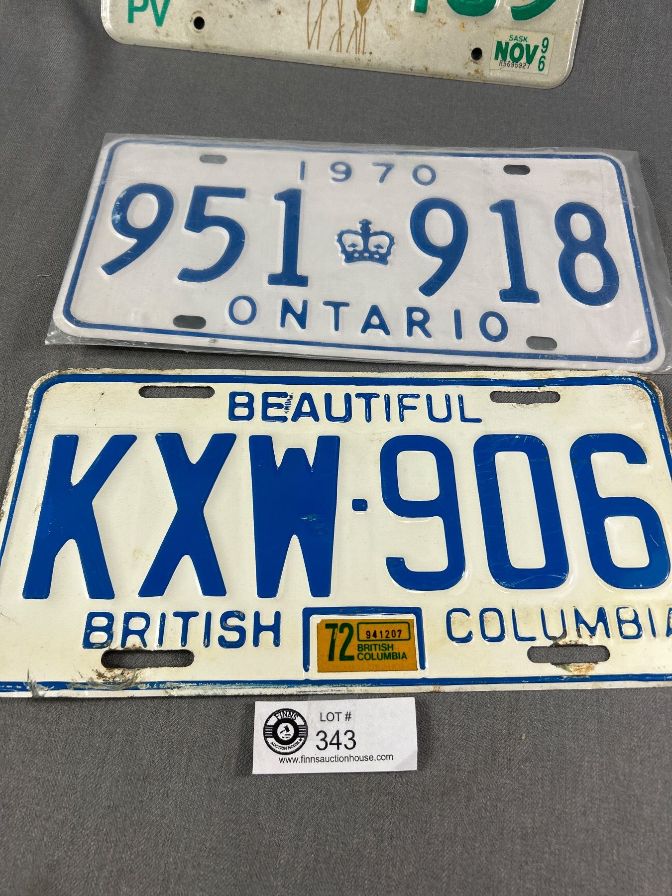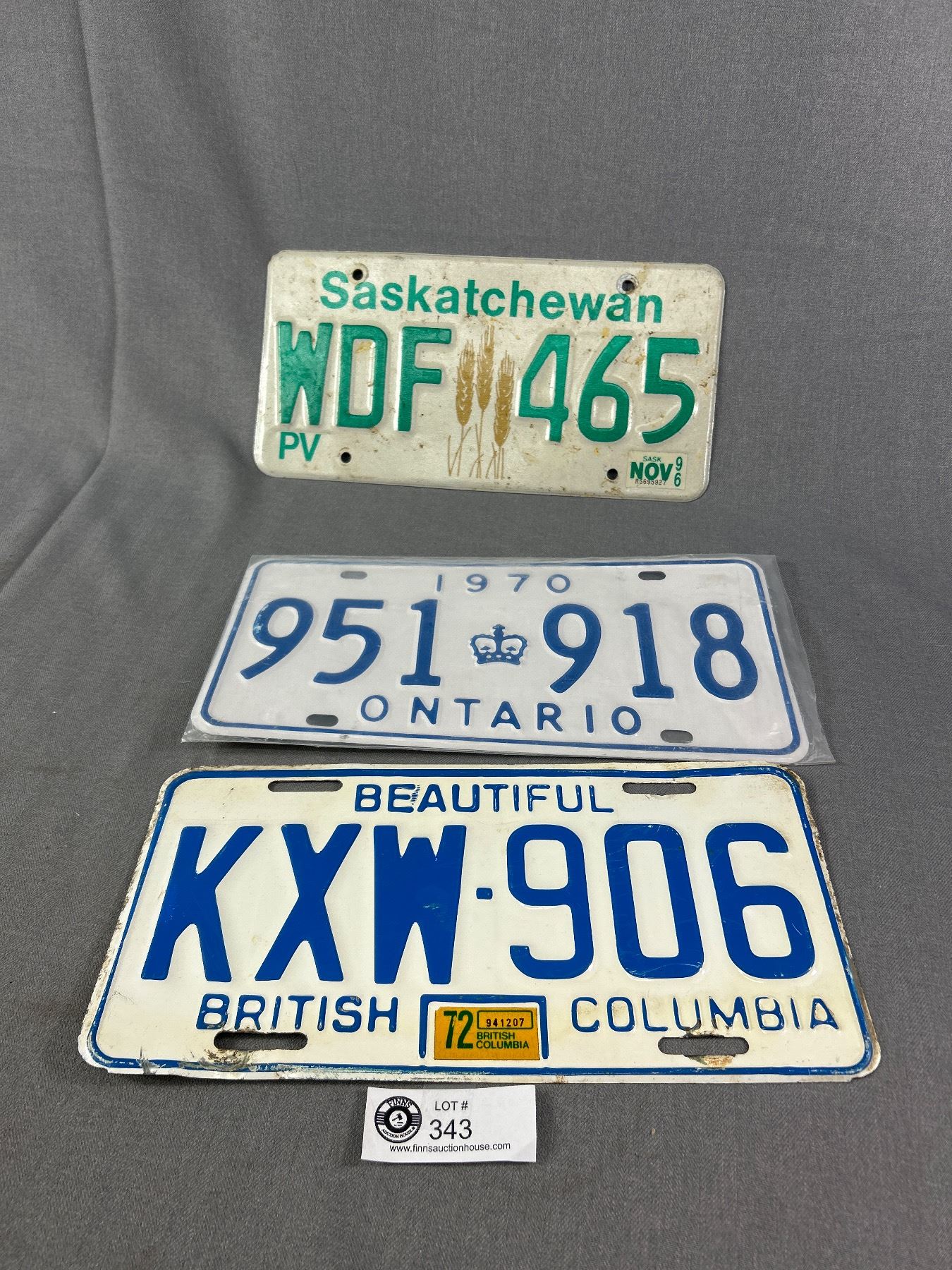 Lot Of Vintage License Plates - 1970 Ontario, 1972 British Columbia & 1996 Saskatchewan