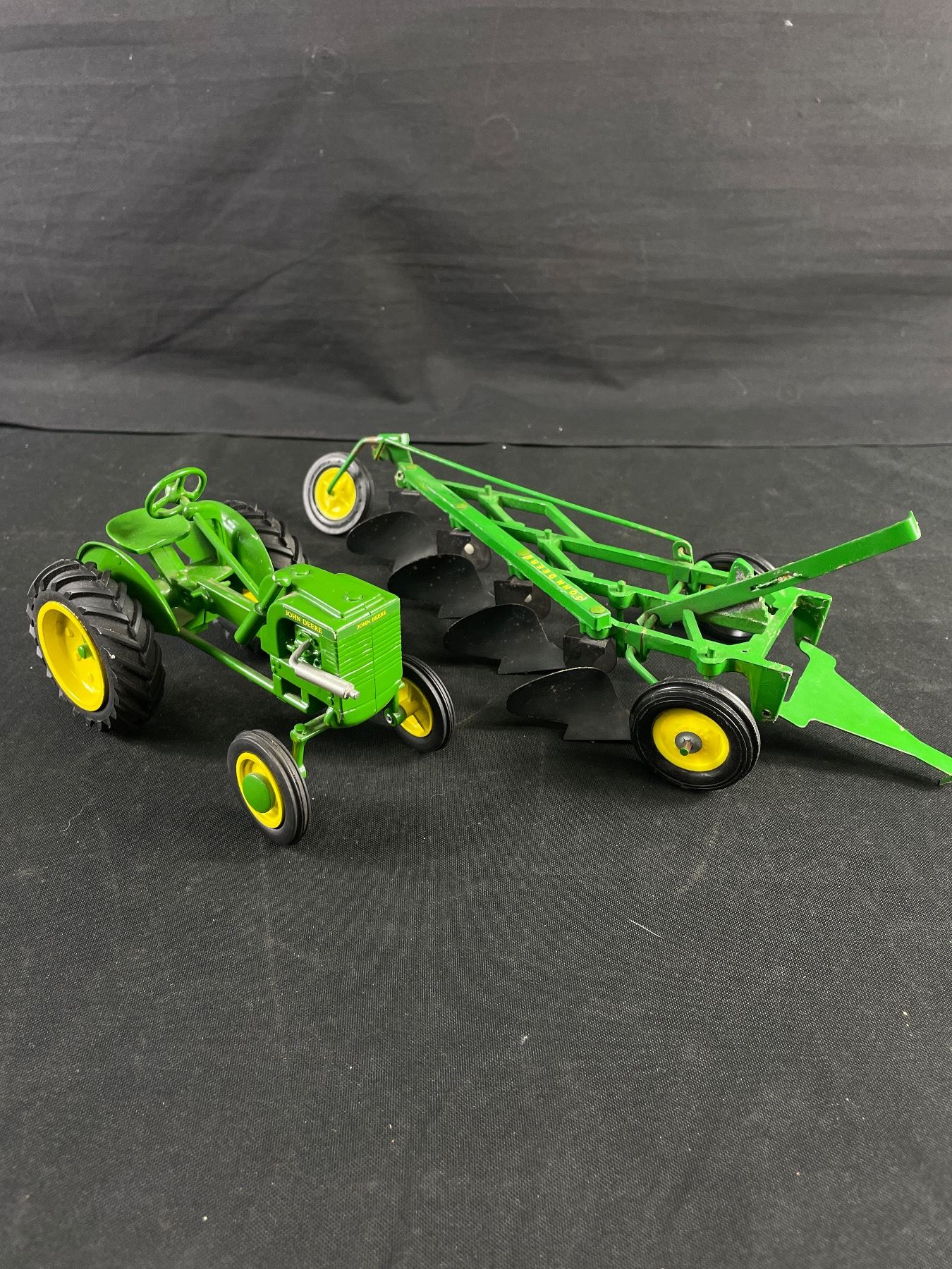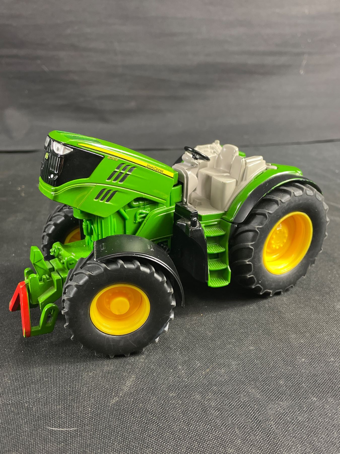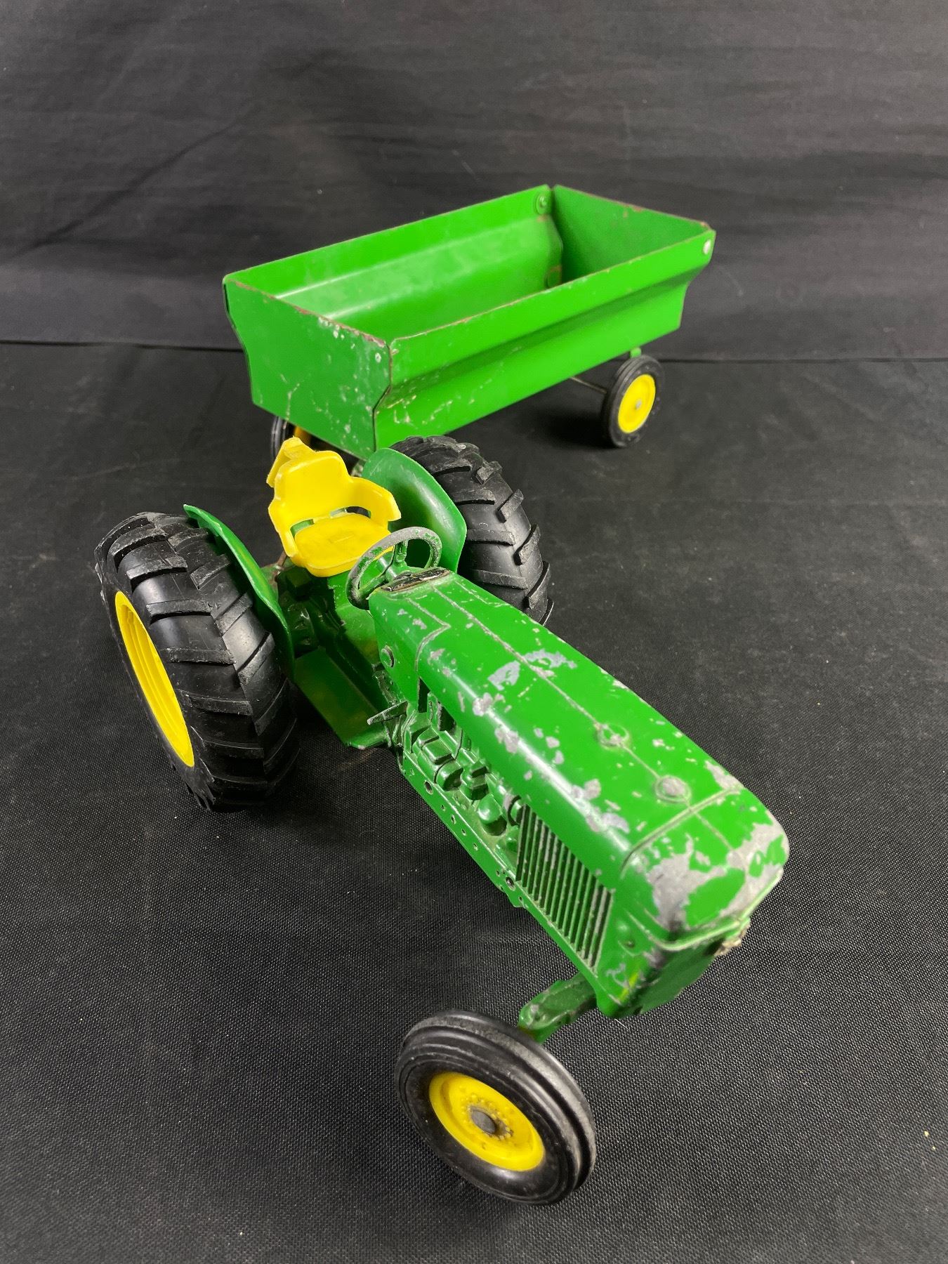 Lot Of Vintage & Newer John Deere Die Cast Metal Tractors & Trailers. Largest ERTL Tractor Is 12"L. 2 ERTL Trailers Are Plastic