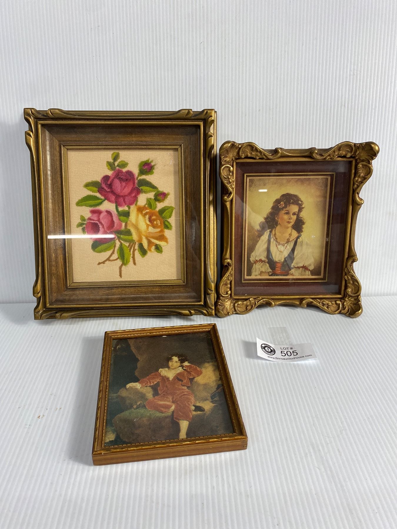 Lot Of Vintage Pictures,(1 Is Needlepoint) In Ornate Frames