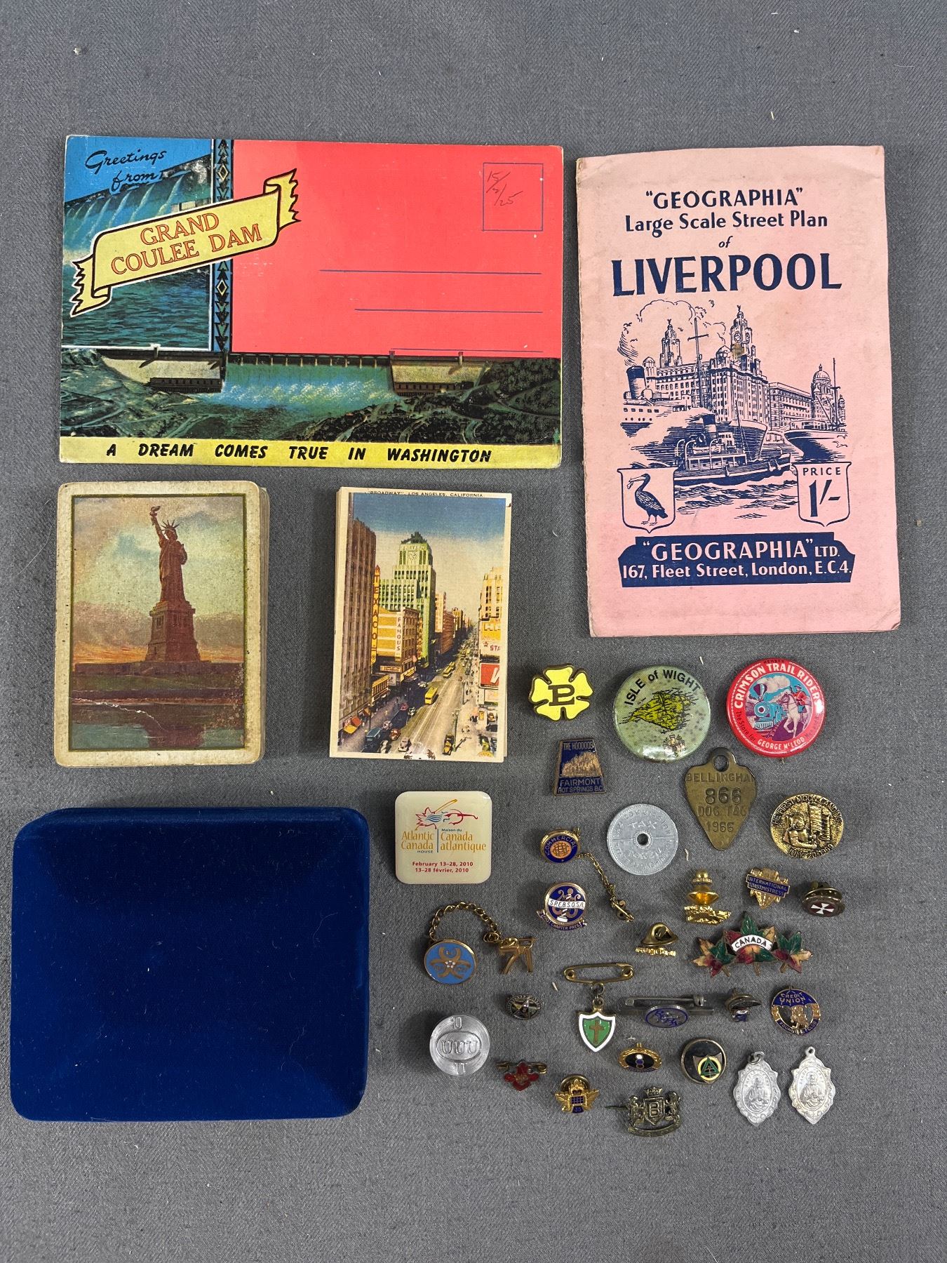 Lot Of Vintage Pins, NY Playing Card Pictures (Incomplete) Post Cards & More