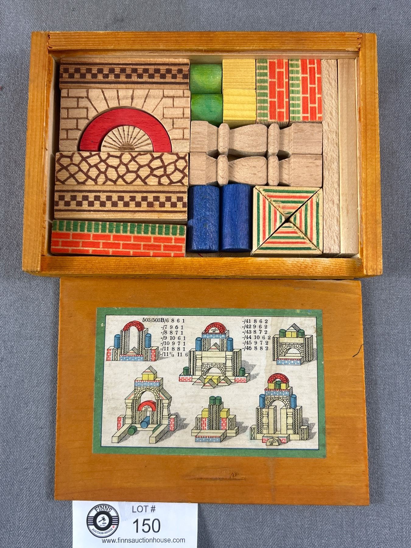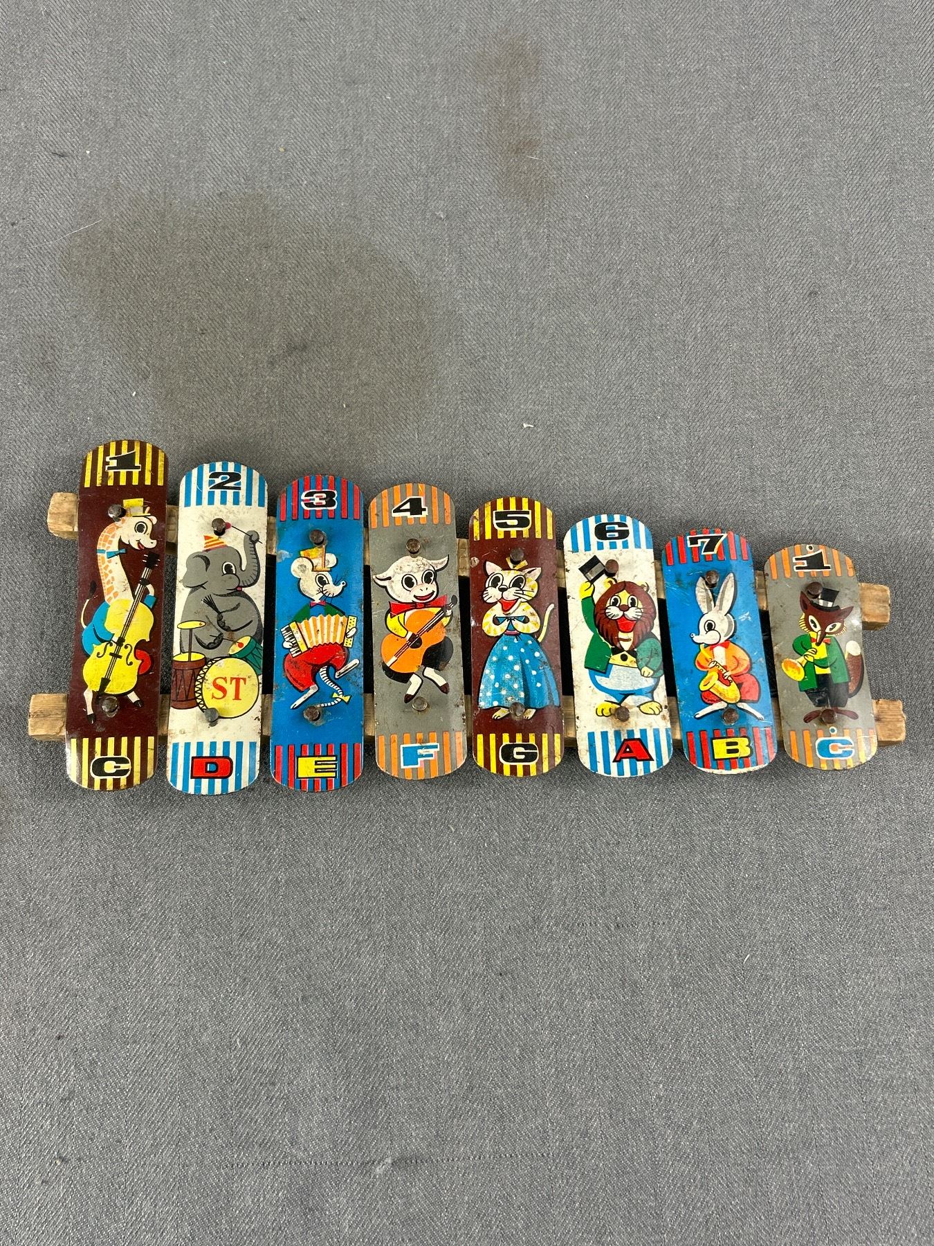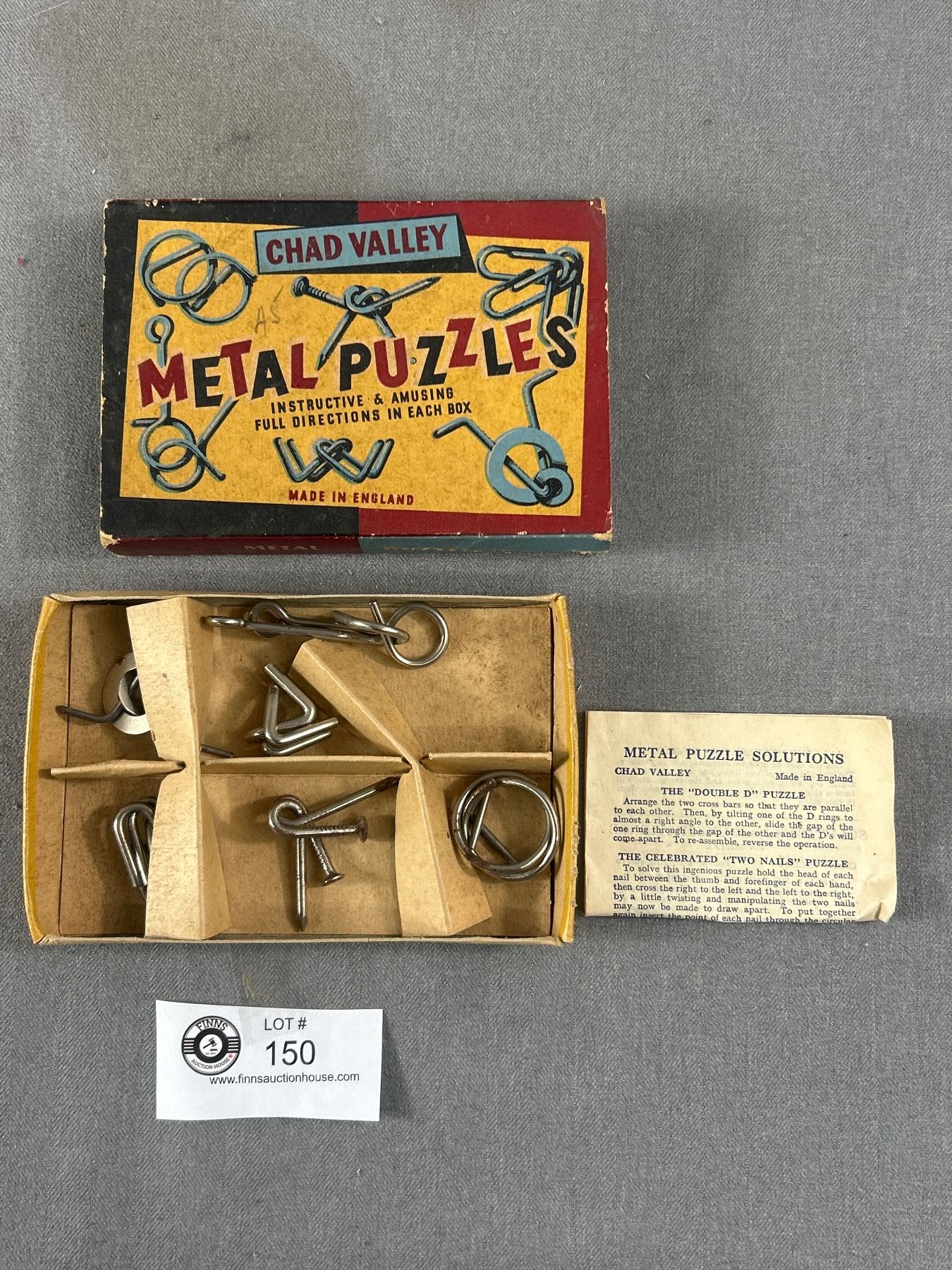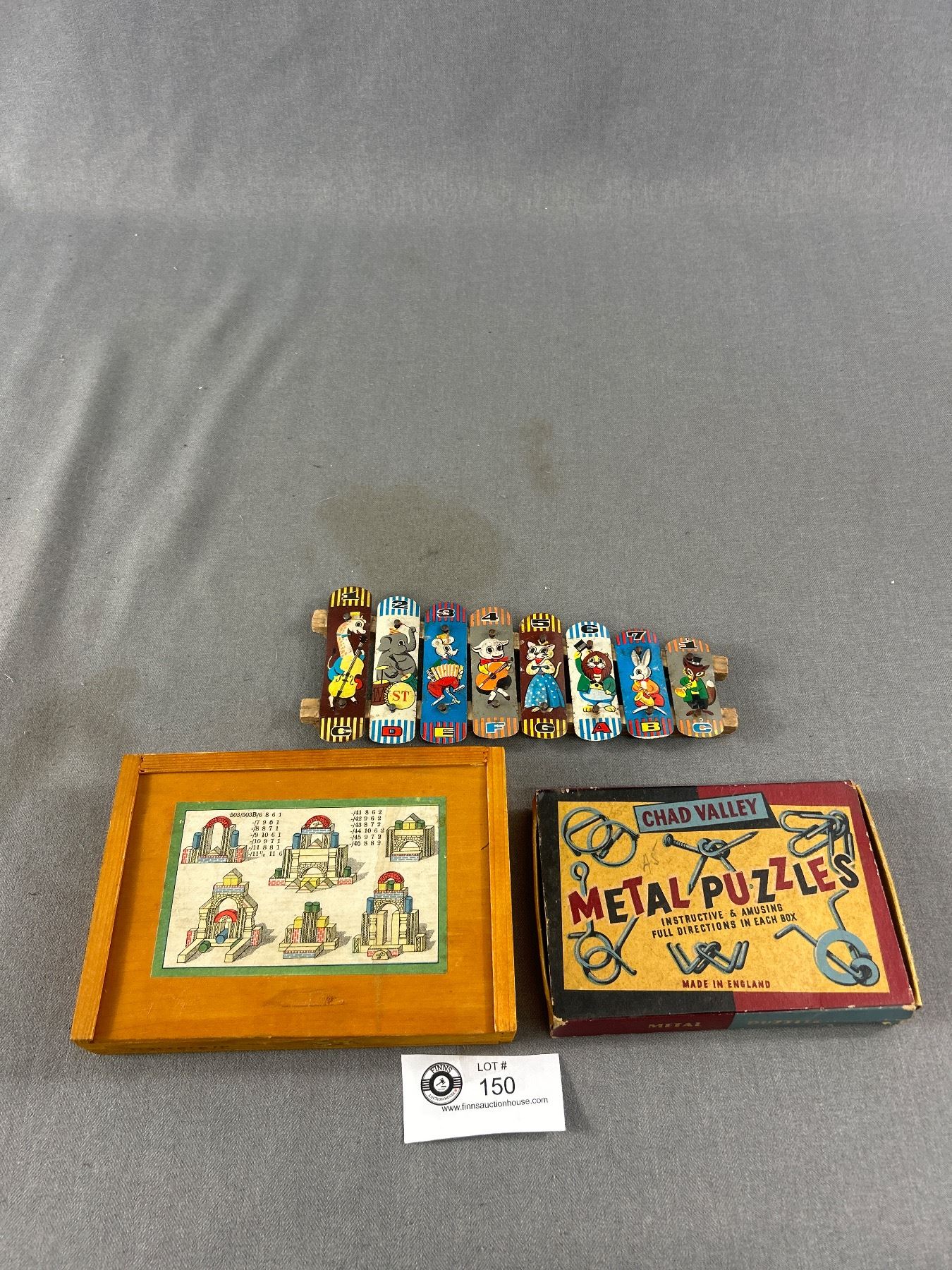 Lot Of Vintage Toys - 9" Xylophone, Metal Puzzles In Original Box, Made In England & Wood German Building Toy